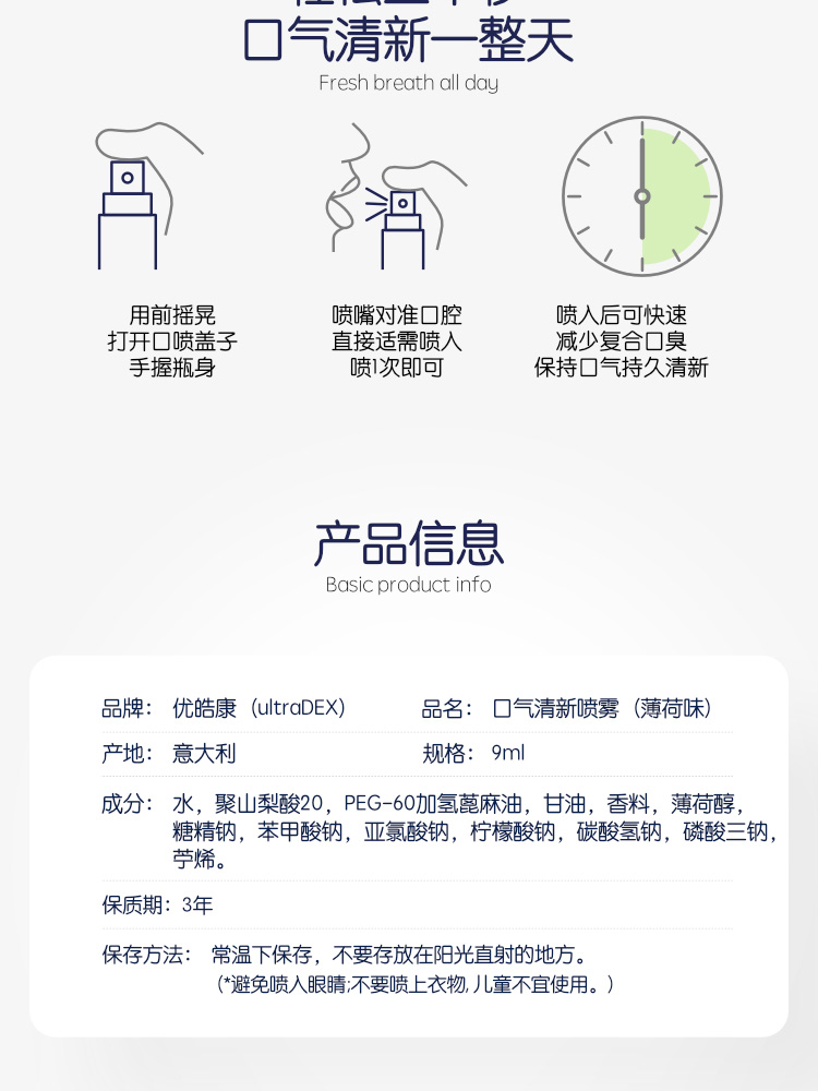 ultraDEX优皓康 薄荷味口气清新喷雾 9ml