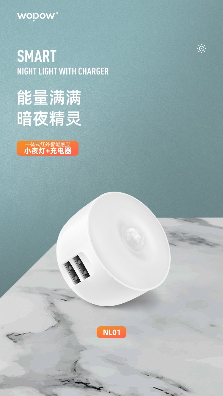 【授权商品】中国wopow/沃 无线充电+小夜灯 NL01 白色