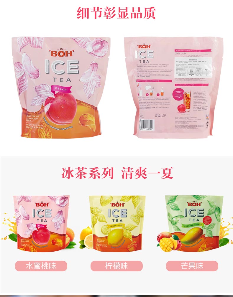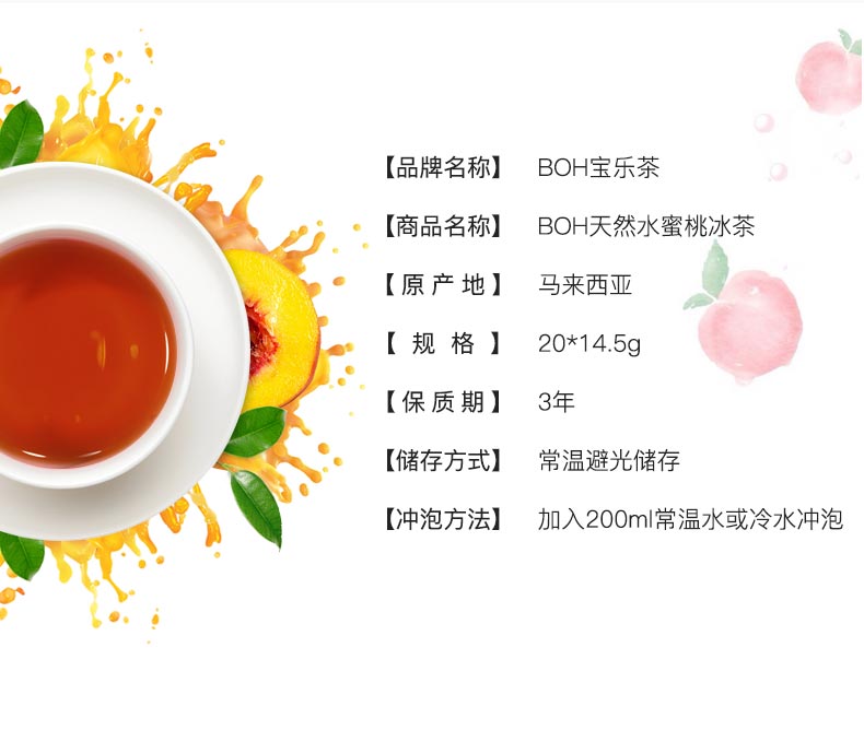 马来西亚进口BOH宝乐 水蜜桃冰茶 冷泡茶 20袋/包