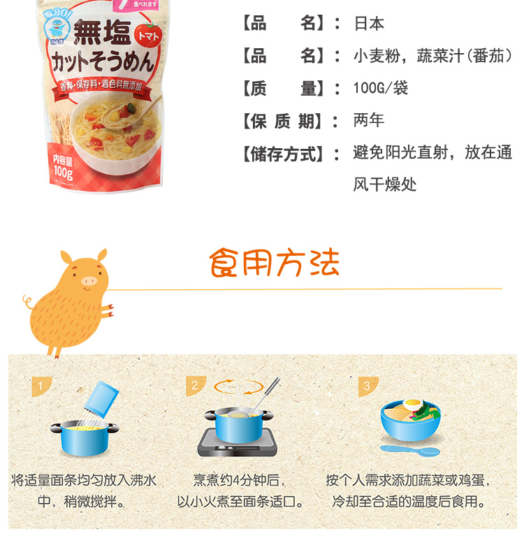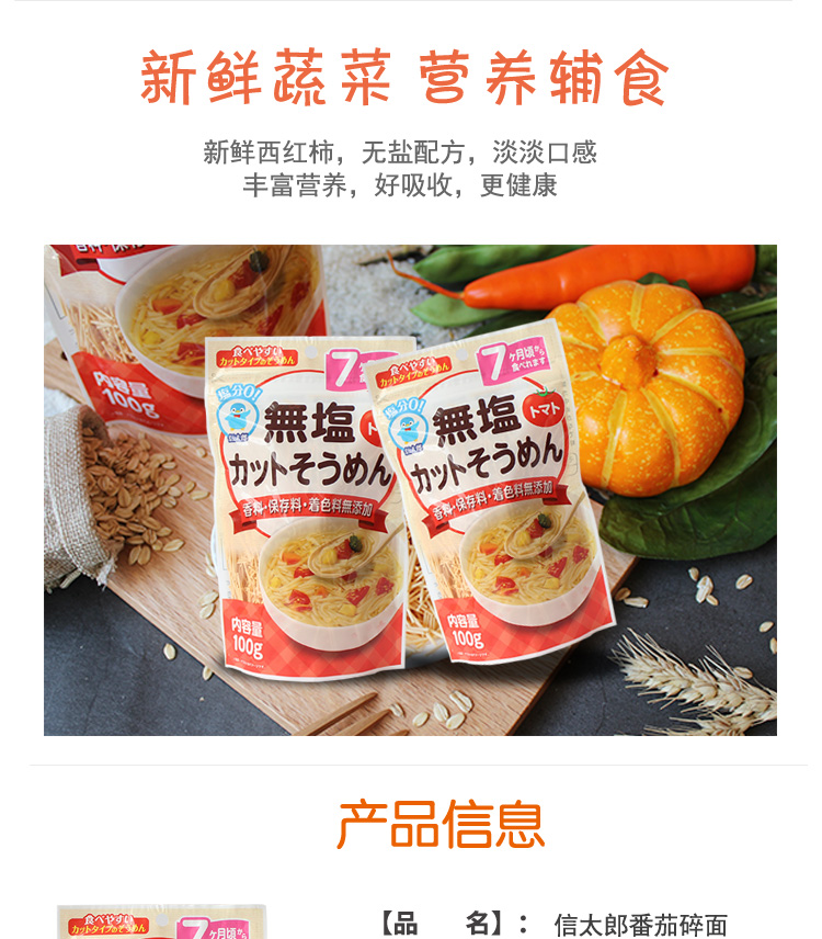 日本信太郎面太 婴儿辅食碎面 番茄味100g/袋