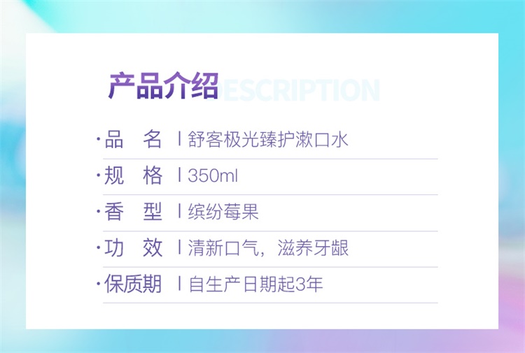 【国产】舒客抑菌极光臻护漱口水(缤纷莓果)350ml/瓶