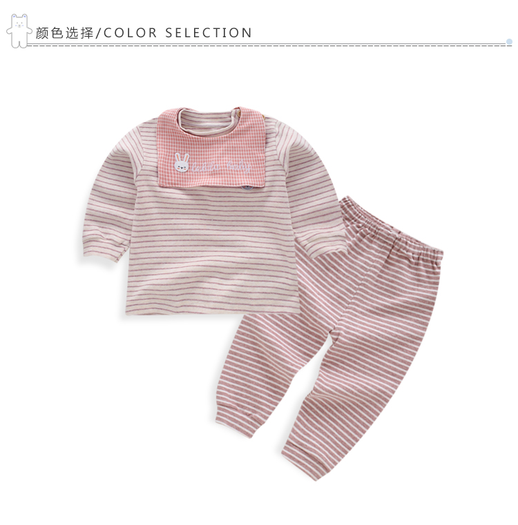 乐比婴儿内衣肩扣两件套春秋宝宝家居服打底衣85339-19条条66-73-80粉