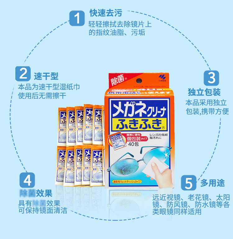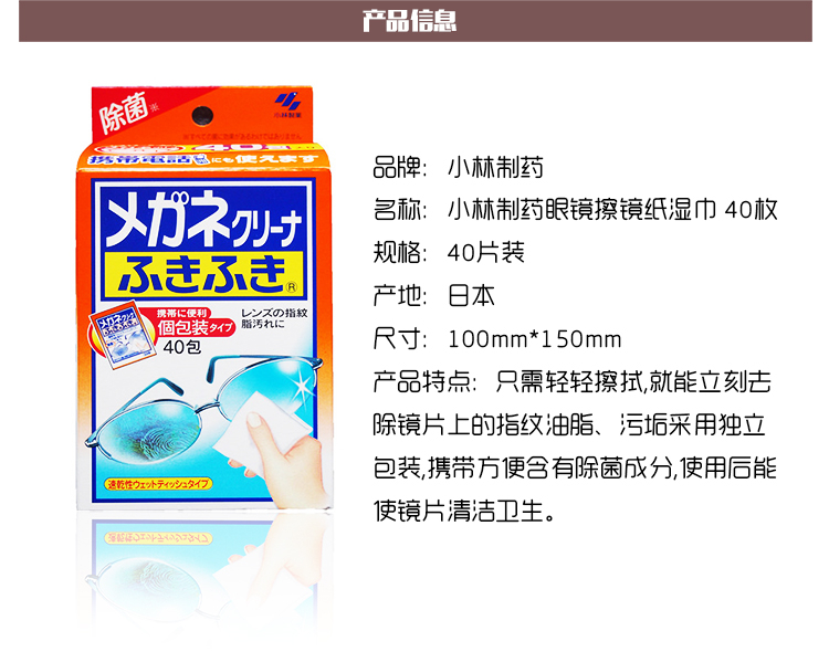 【日本直邮】KOBAYASHI 小林 眼镜擦拭清洁纸 40片装