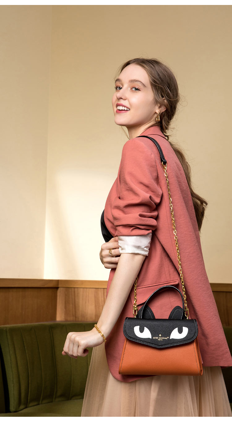 日本marssharing猫眼包 2020新款时尚百搭可爱手提包可手拎可单肩斜挎女包 黄色