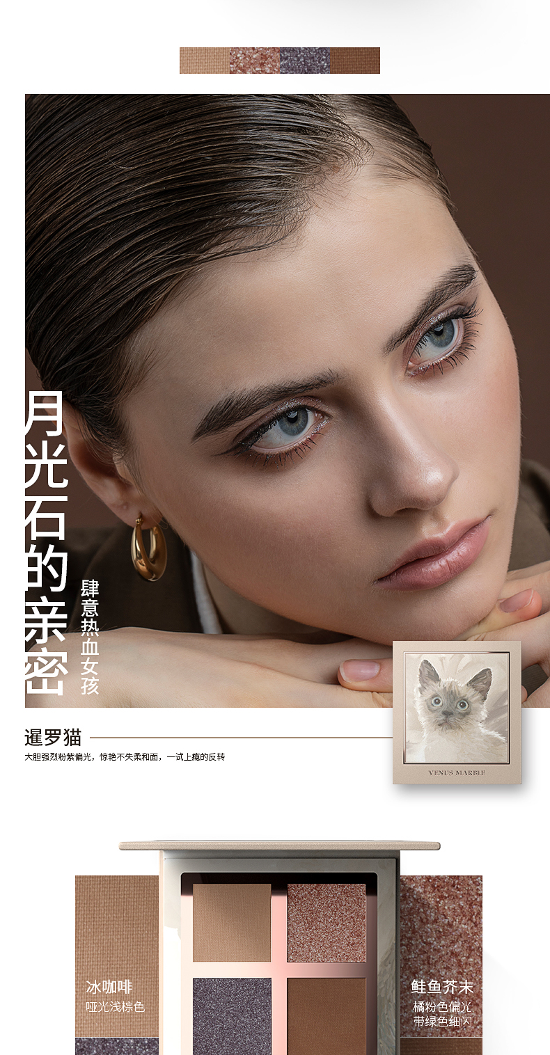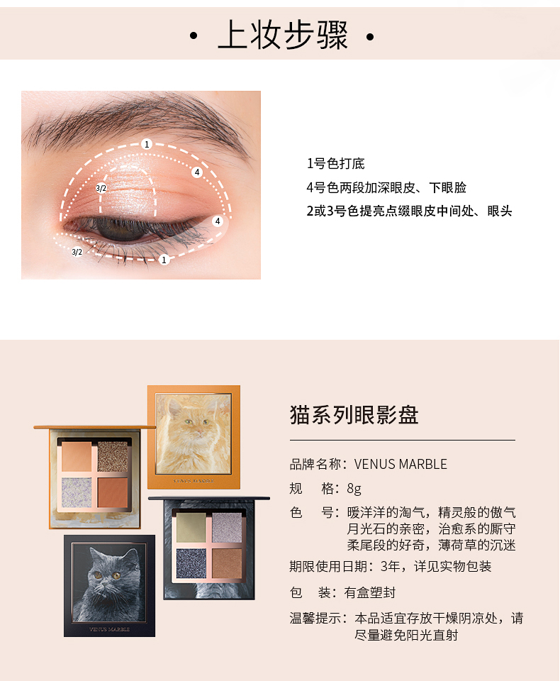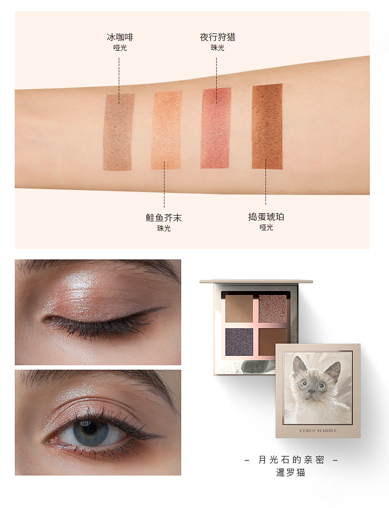 【买一赠一 颜色随机】VENUS MARBLE猫咪四色眼影盘 #柔尾段的好奇 美国短毛猫