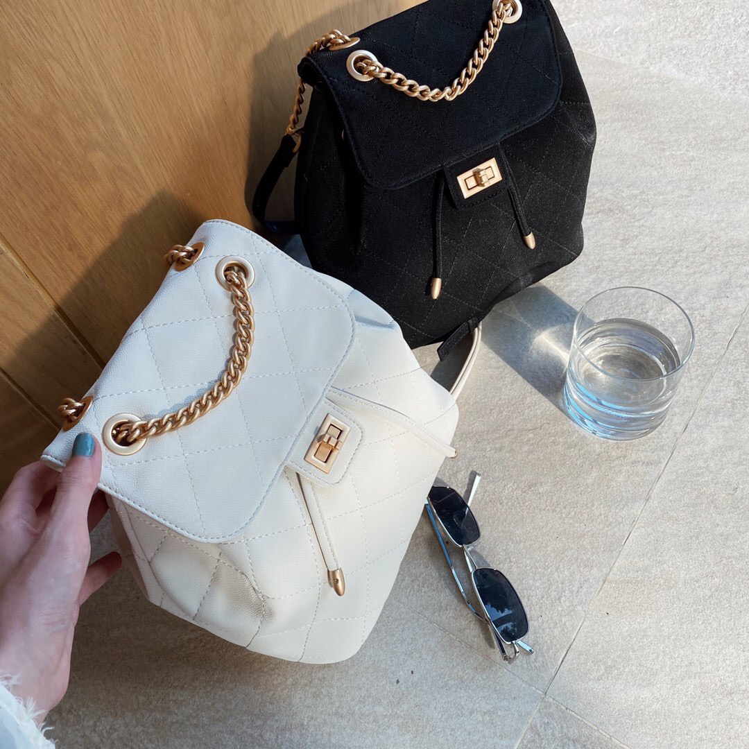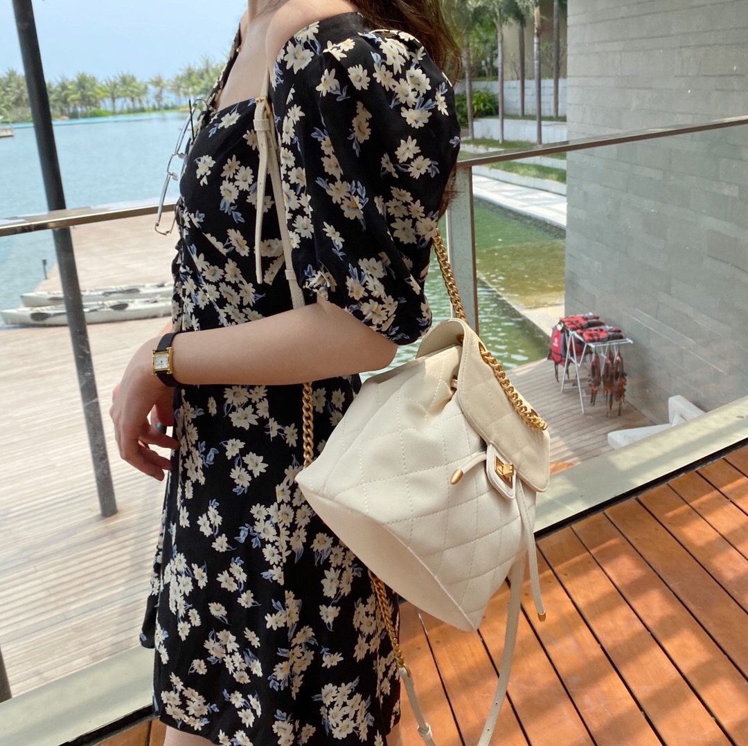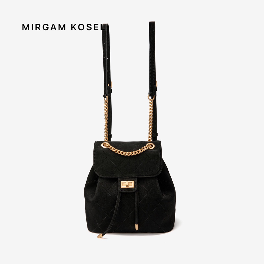 MIRGAM KOSEL新款小mk菱格抽绳双肩包女包白色