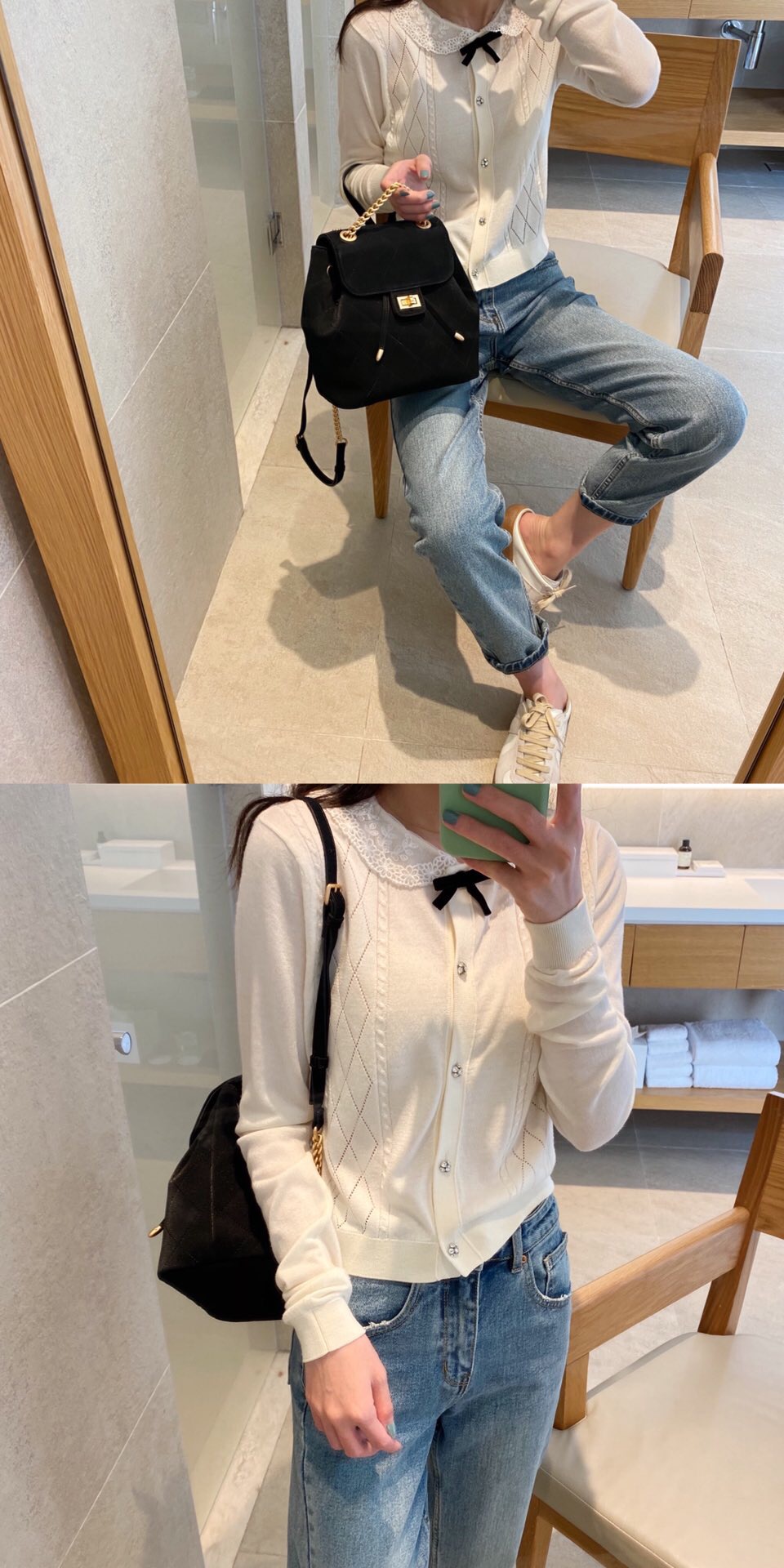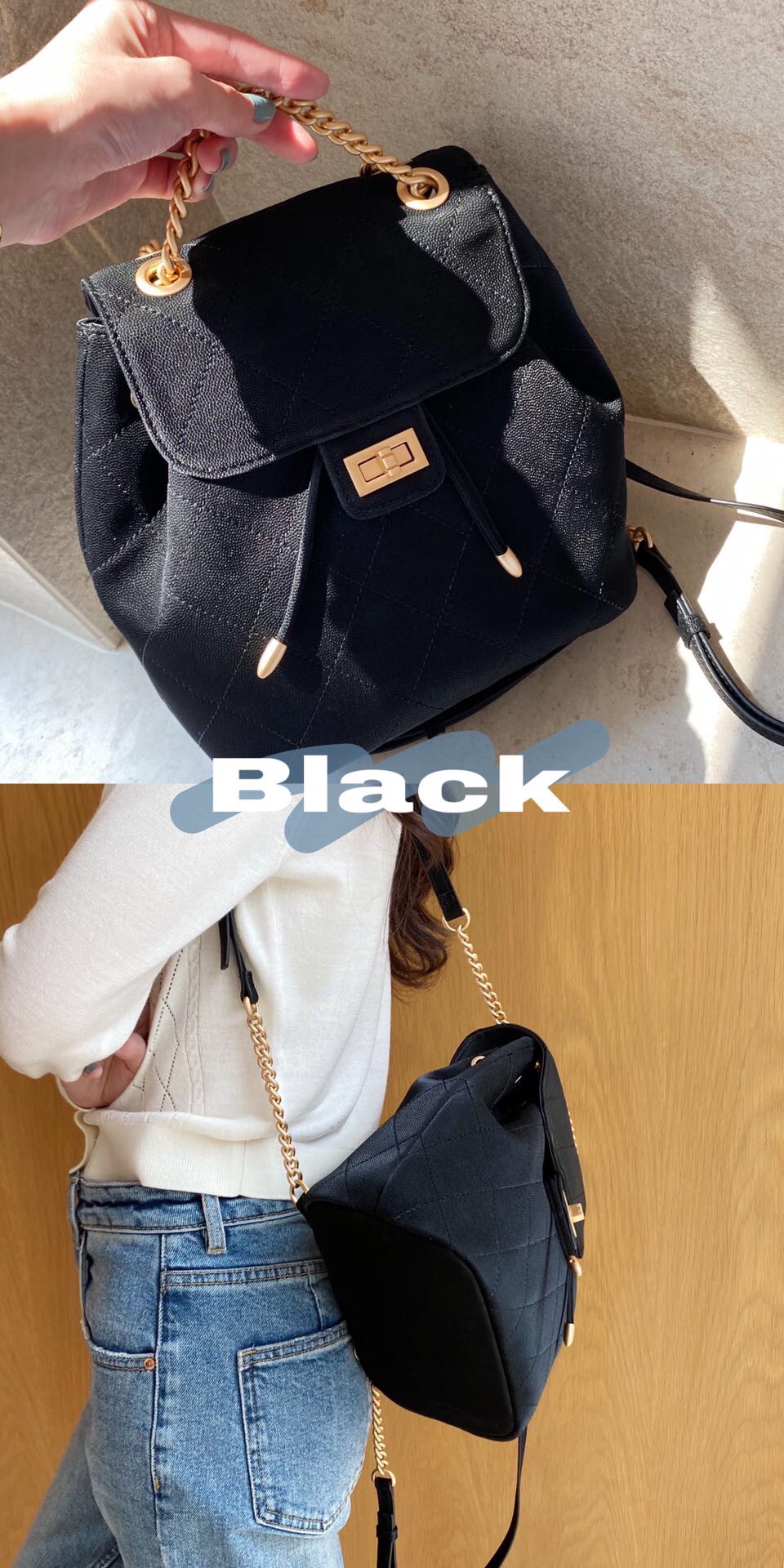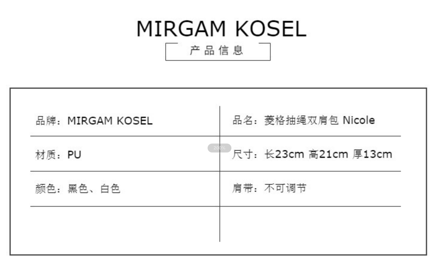 MIRGAM KOSEL新款小mk菱格抽绳双肩包女包白色