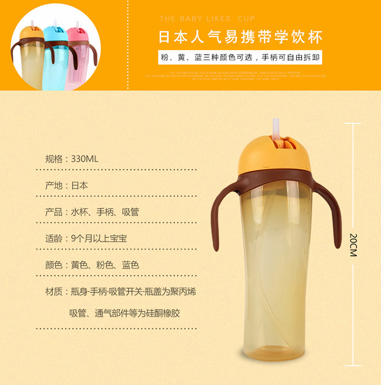 日本贝亲Pigeon手柄训练杯 330ml 黄色