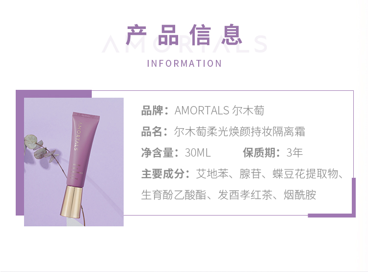 【李佳琦推荐】尔木萄新品柔光焕颜持妆隔离霜遮瑕保湿控油提亮妆前乳二合一 30ml