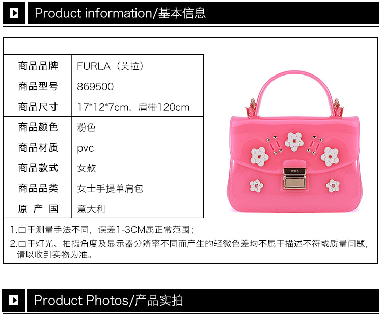 您所在的位置:首页 > 服饰箱包  > 潮流女包 > 手提包  > Furla 芙拉 粉色PVC女士手提包 869500