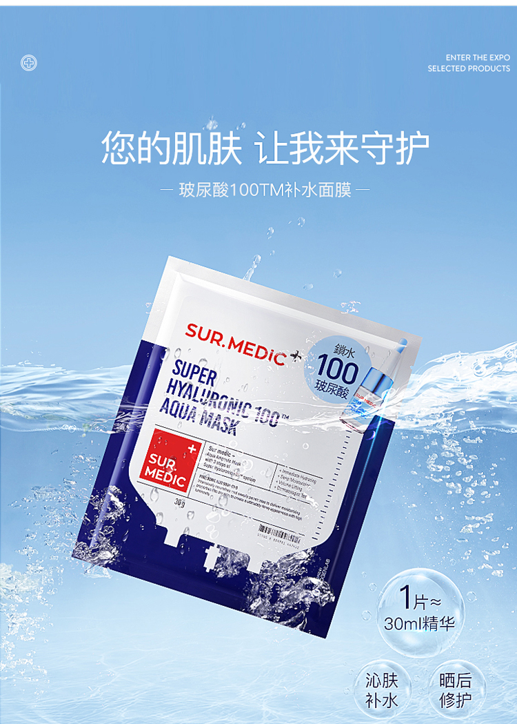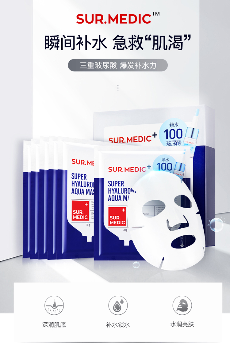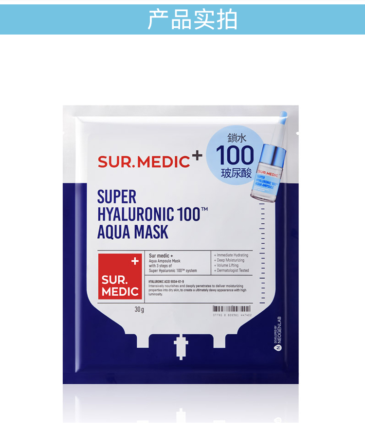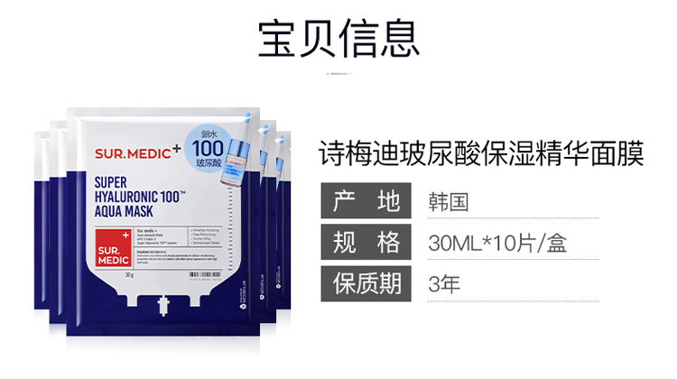【韩国直邮】sur.medic诗梅迪玻尿酸100面膜10片/盒