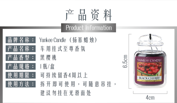 【授权商品】扬基汽车香氛瓶挂件 - 黑樱桃(3g)