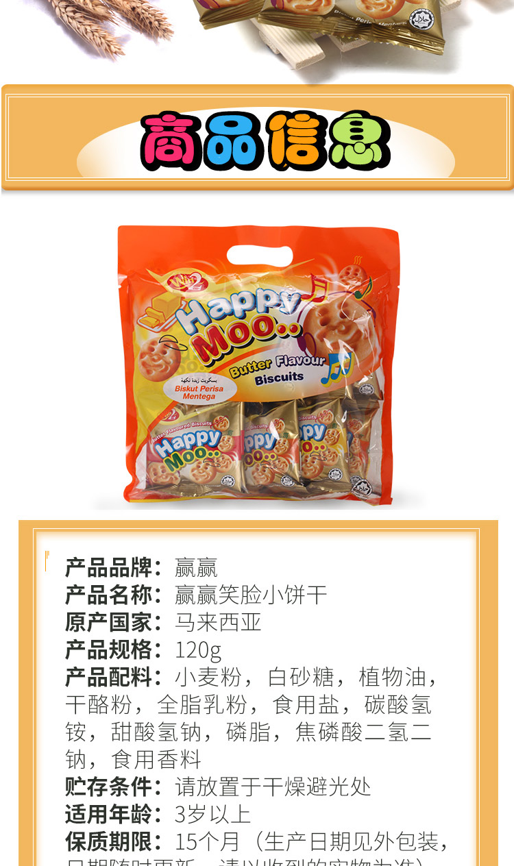 马来西亚 赢赢Win2 黄油曲奇笑脸饼干120g/袋
