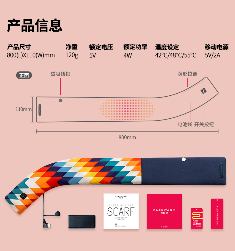【授权商品】李佳琦 同款飞乐思智能发热围巾-粉红秘境(粉)D