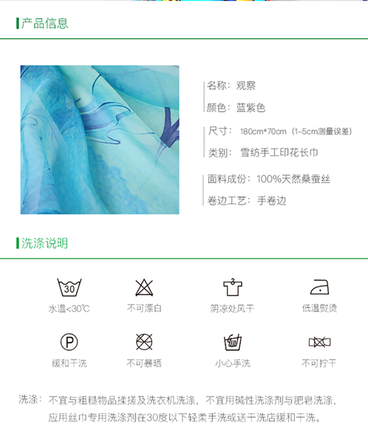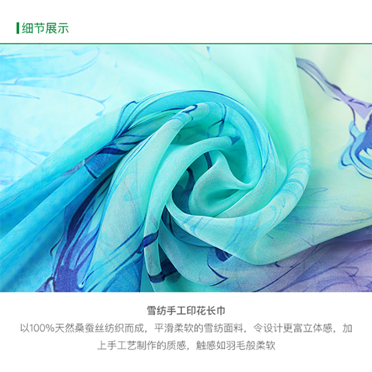 您所在的位置:首页 > 服饰内衣  > 服饰配件 > 女士丝巾/围巾/披肩  > 沐泠 观察 100%天然桑蚕丝雪纺手工印花长巾 ML-90460832