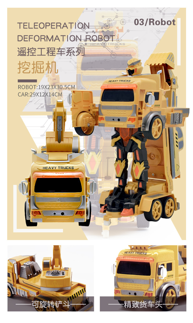 怀恩 新款手势三重感应遥控工程车一键变形手表遥控挖掘机男孩玩具