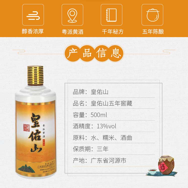 皇佑山粤派黄酒五年窖藏 广东产 500ml