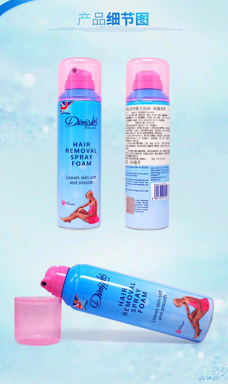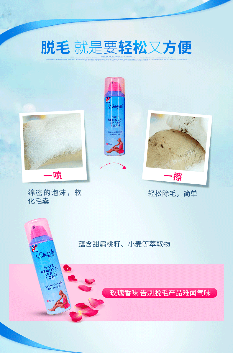 【直发】英国蒂普莱丝Dimples杜碧丝脱毛泡沫-玫瑰香味200mL