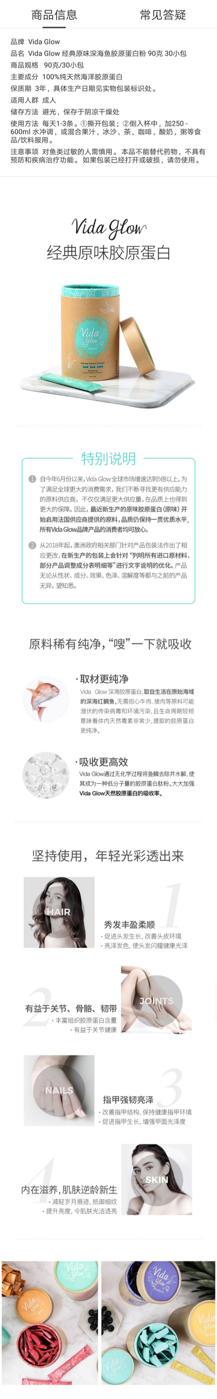澳洲 Vida Glow经典原味深海鱼油胶原蛋白粉(90克 30小包)