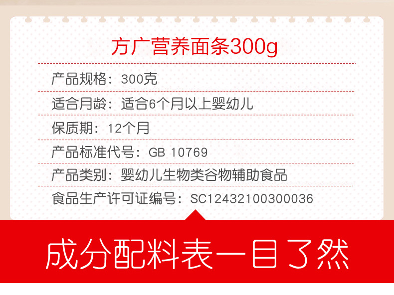 江苏扬州方广AD钙蛋白营养面300克(适合6-36个月婴幼儿