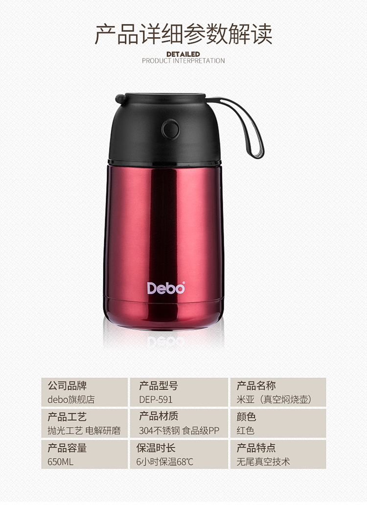 德国Debo德铂米亚304不锈钢保温真空焖烧壶