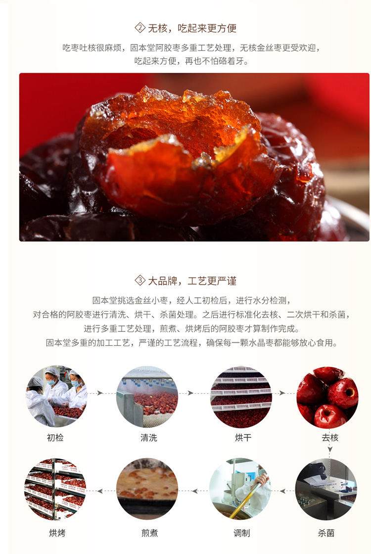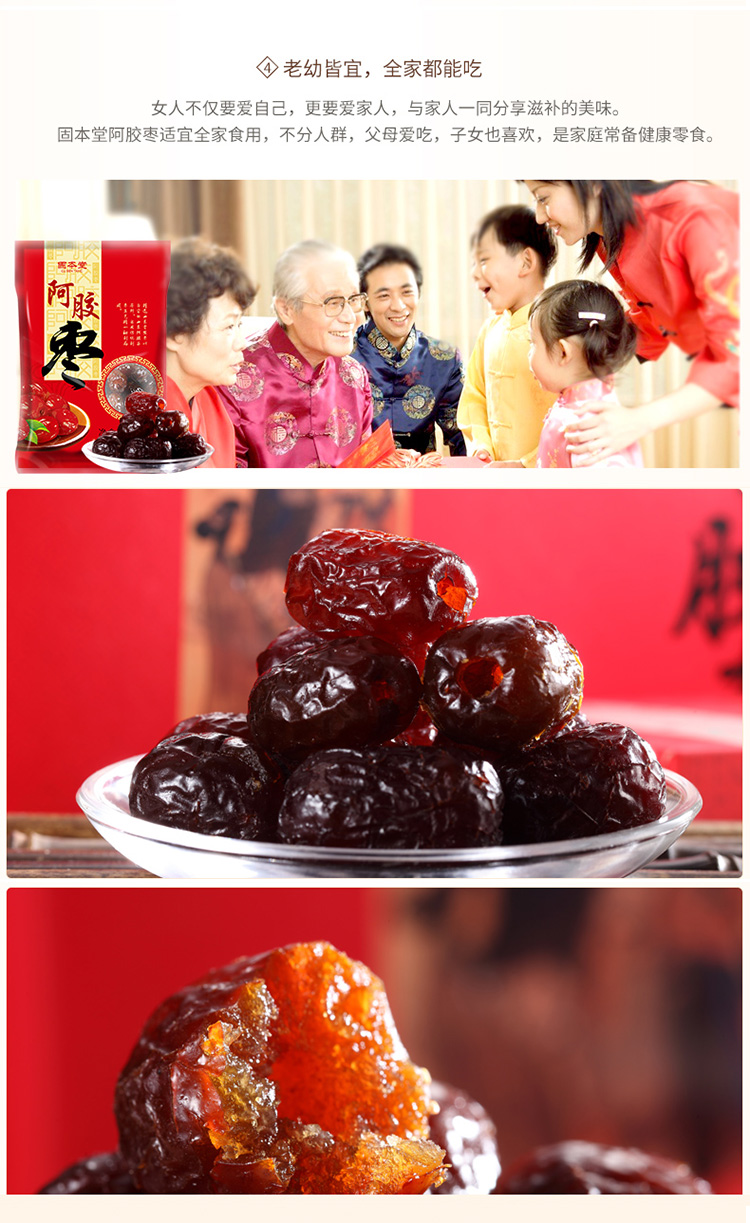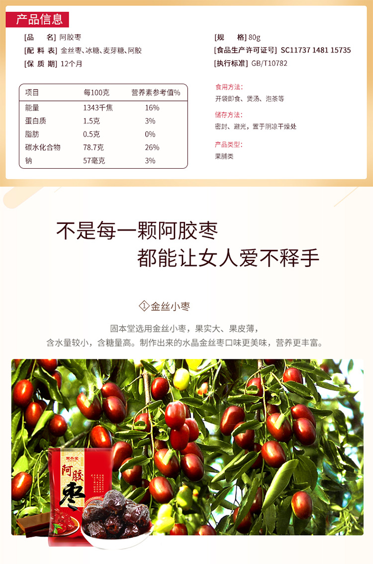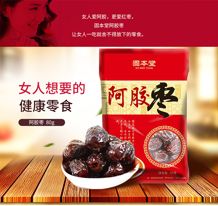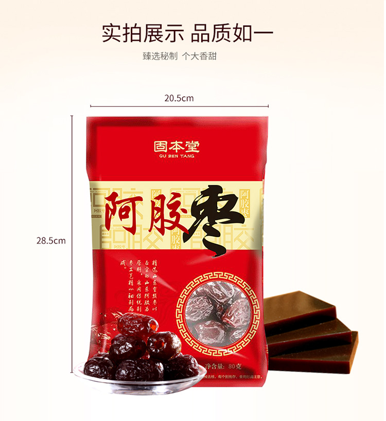 固本堂阿胶水晶金丝枣80g/袋