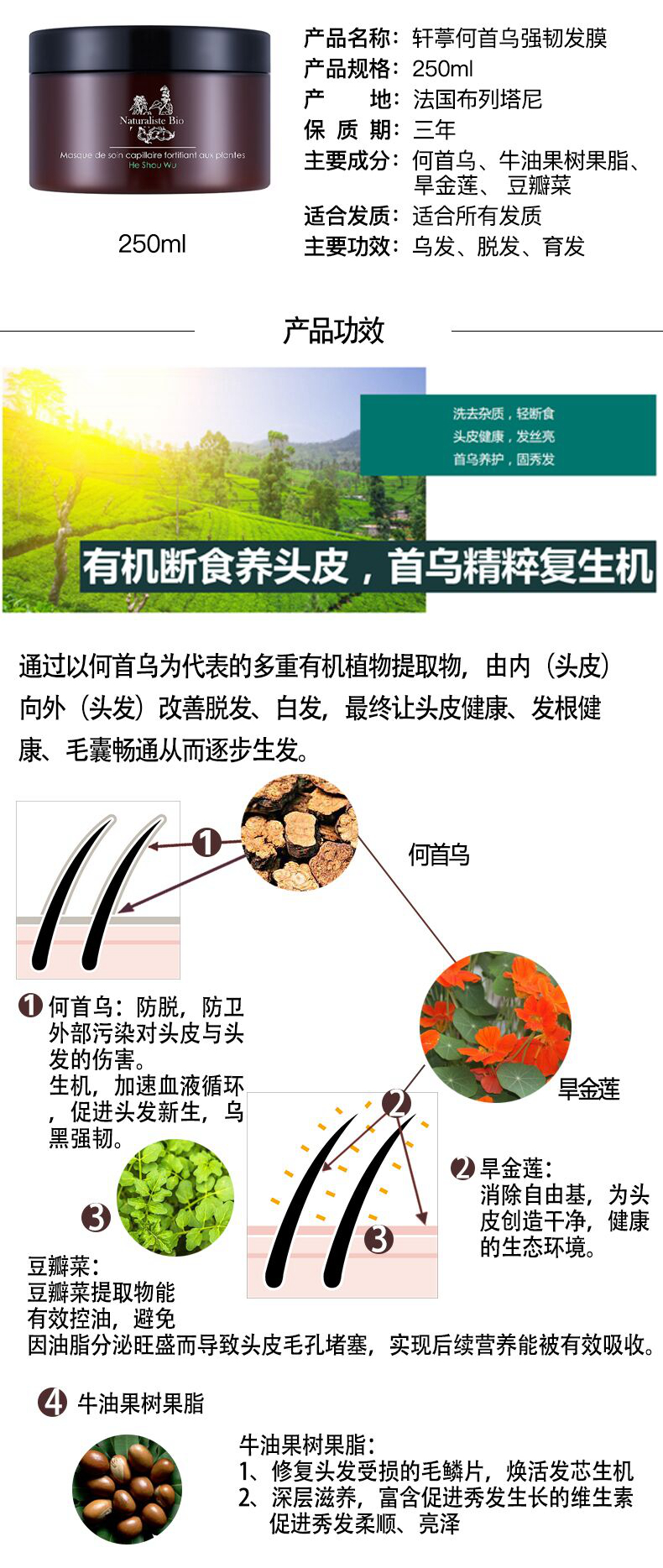 法国轩葶有机Naturaliste Bio何首乌强韧发膜250ml