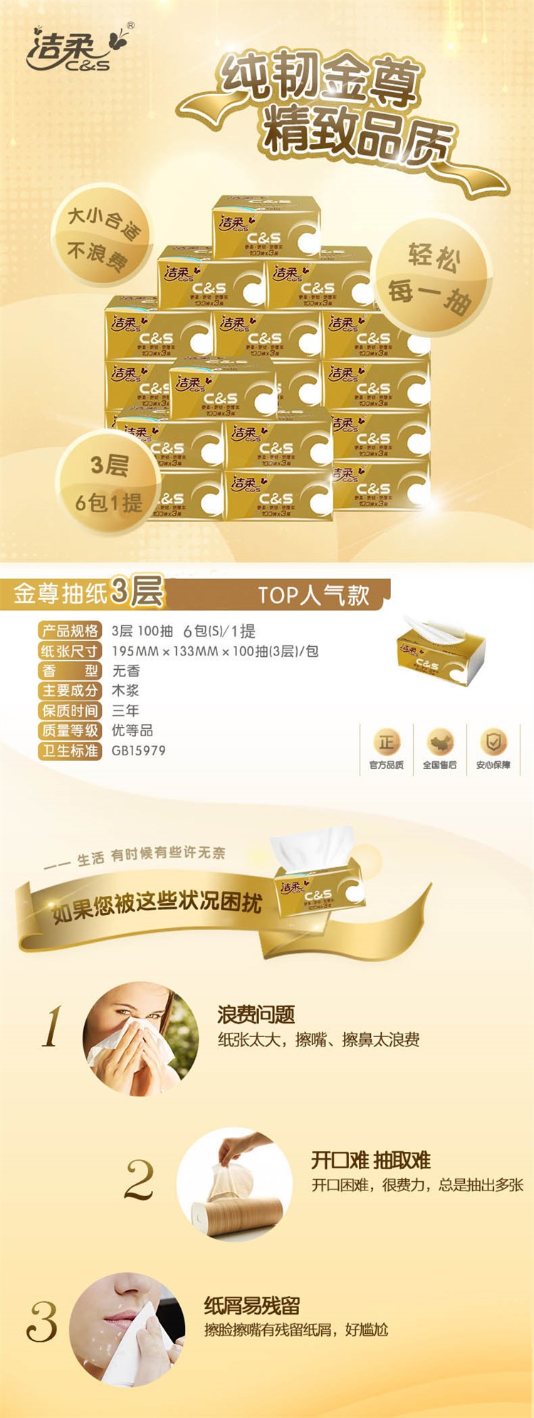 洁柔抽纸整箱24包纸巾无香宝宝面巾纸家用卫生纸餐M码实惠家庭装