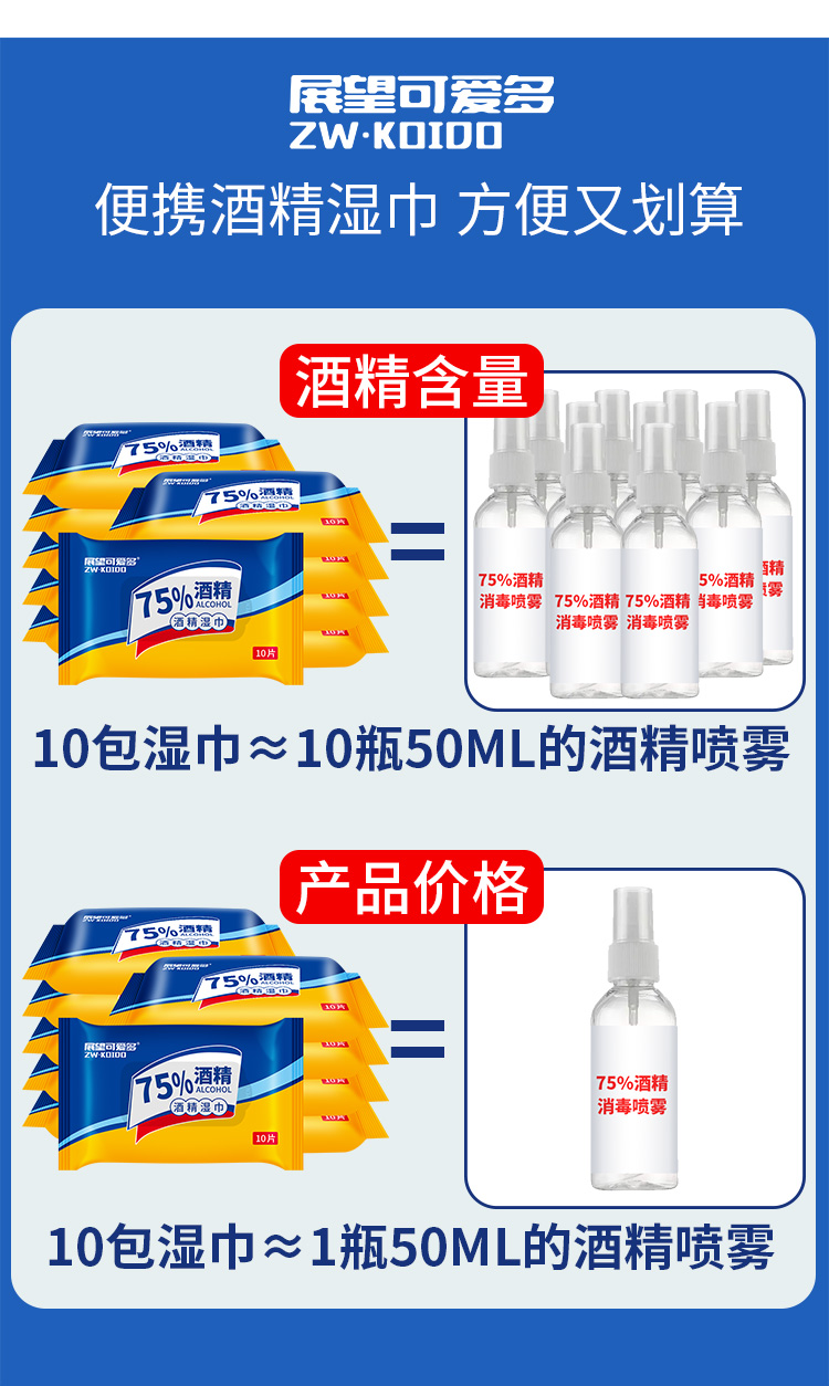 展望可爱多75%酒精灭活病毒湿巾 启封装10片/包*10包