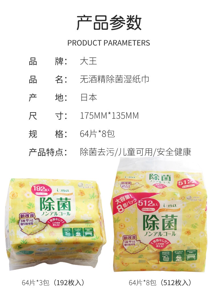 日本大王除菌湿巾64枚*8包