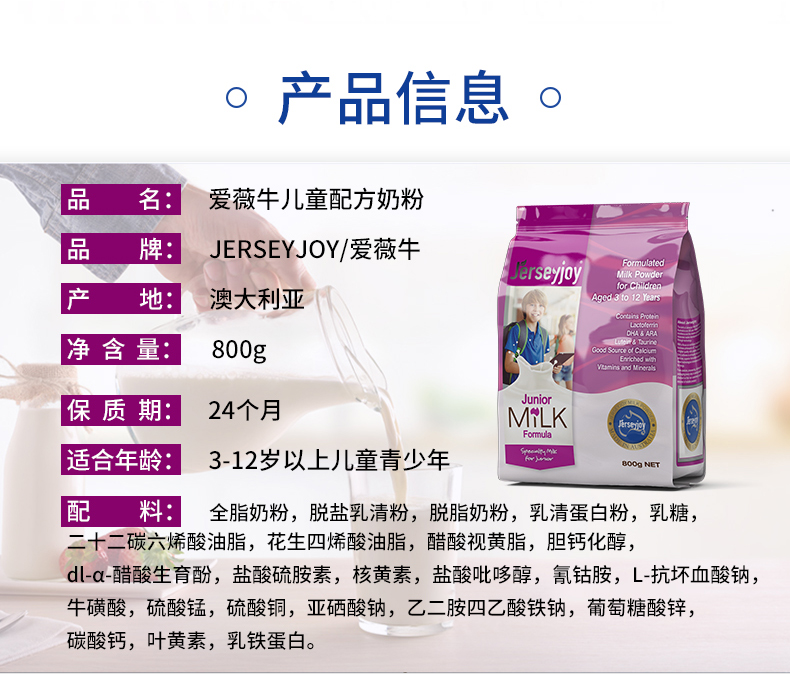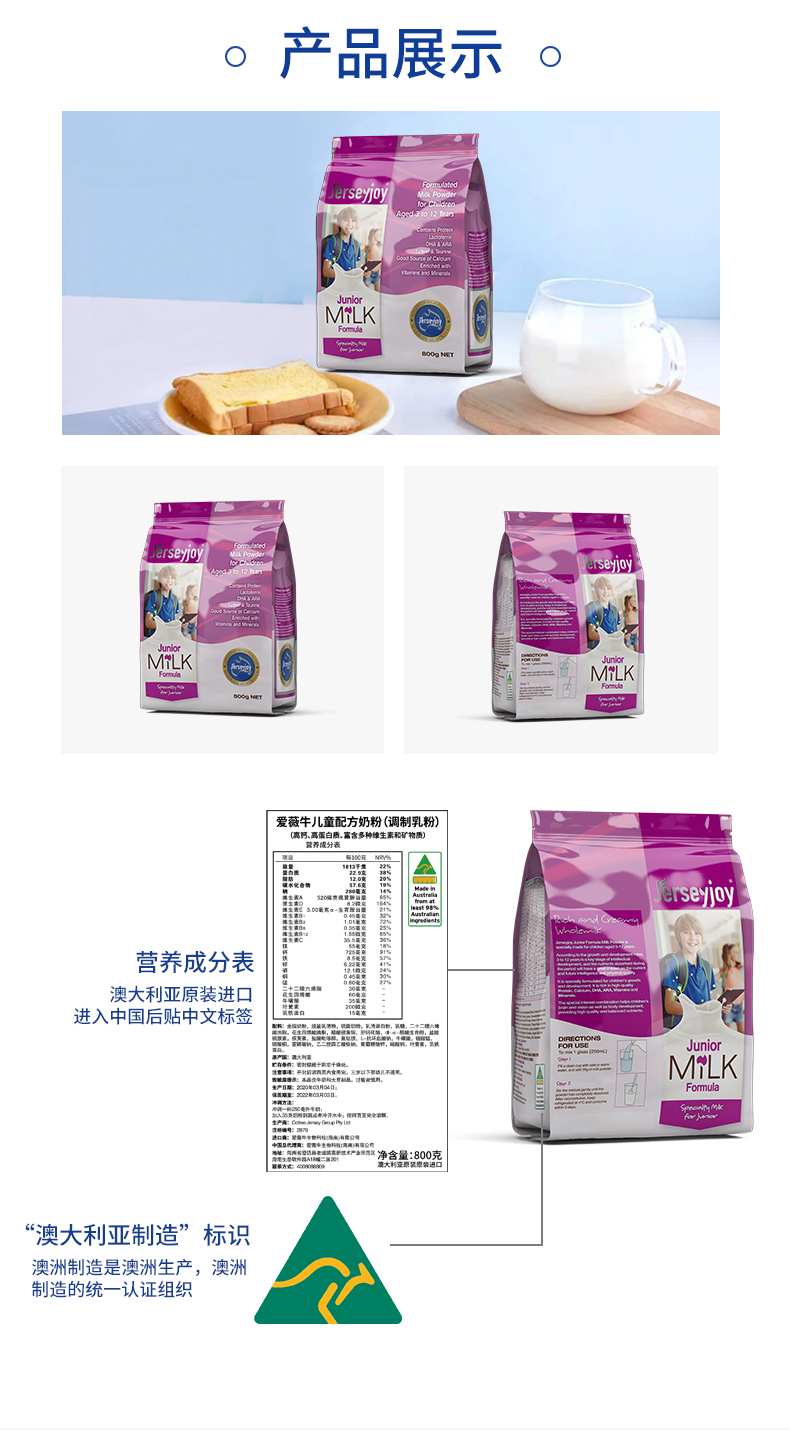 澳大利亚爱薇牛儿童配方奶粉800g/袋