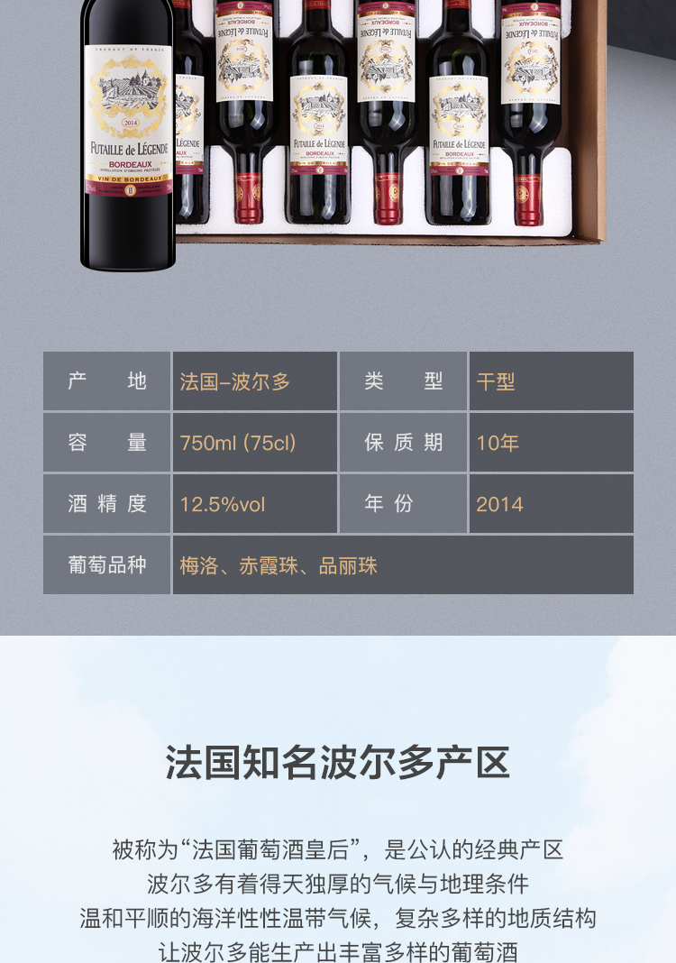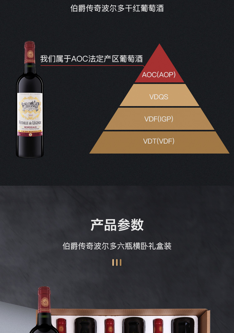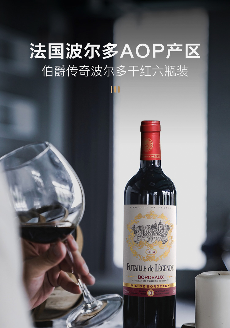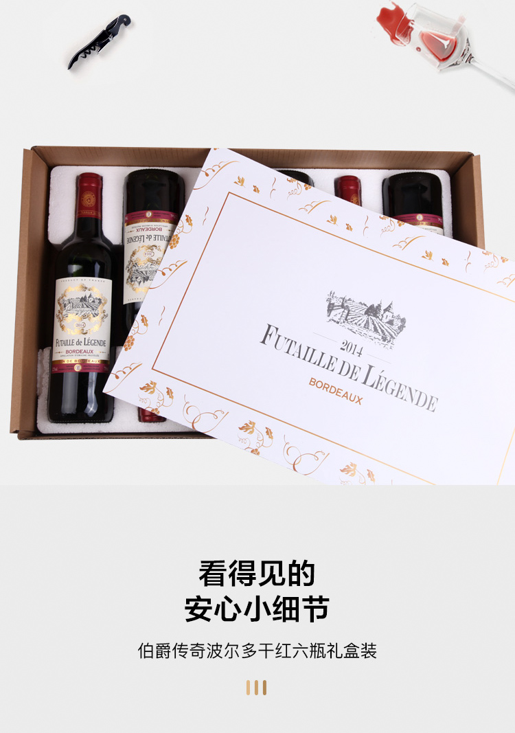 法国伯爵传奇波尔多干红750ml*6 横卧礼盒装