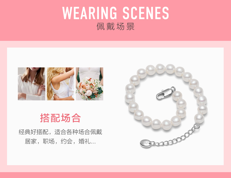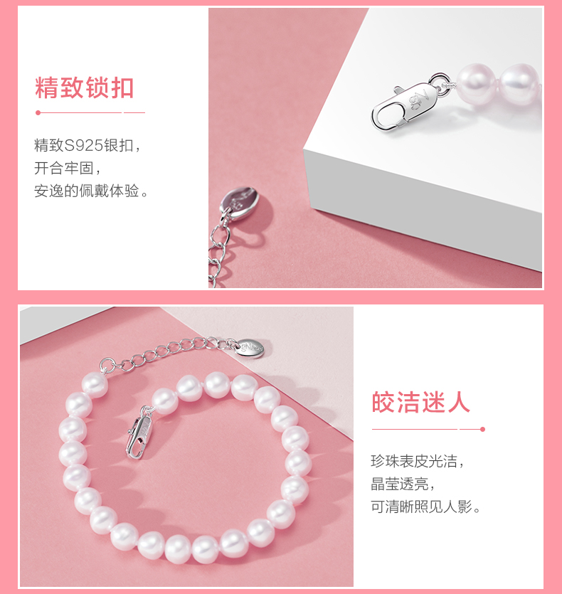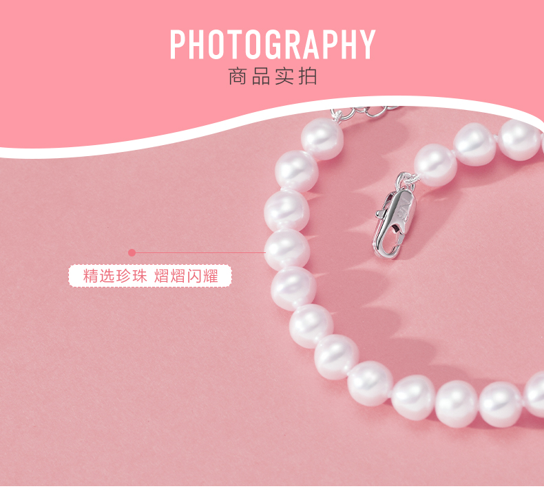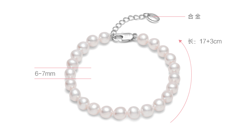 京润珍珠 倾心 白色淡水珍珠手链 强光甄选精品手链 迷人优雅