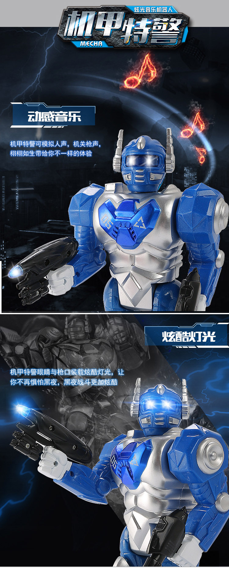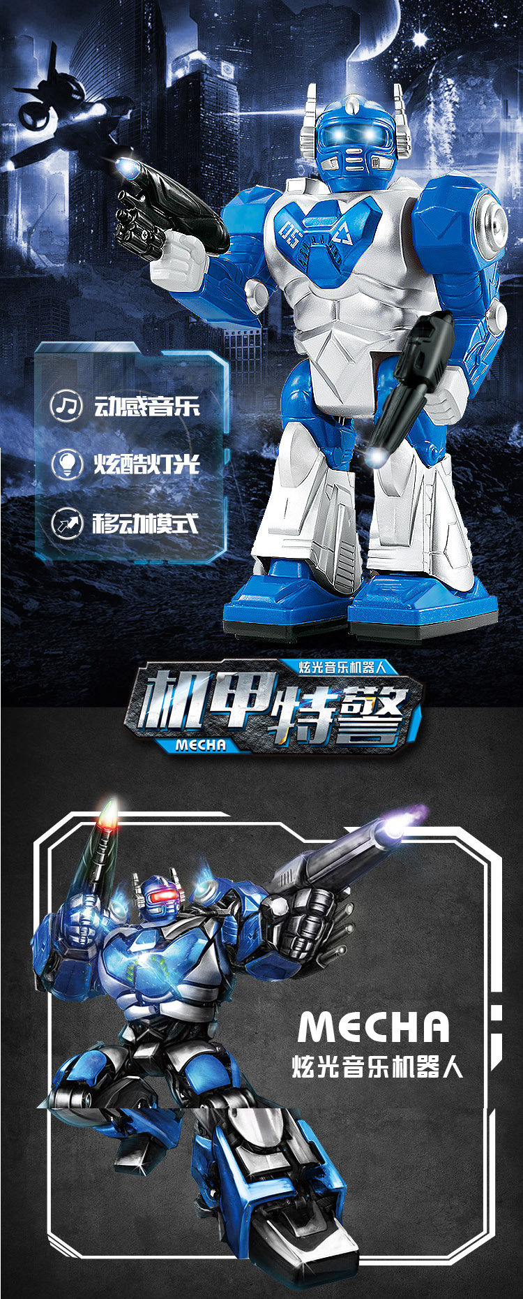 怡高达儿童电动机器人玩具男孩会走路带炫酷灯光音乐跳舞机器人