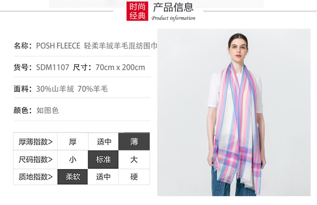 您所在的位置:首页 > 服饰内衣  > 服饰配件 > 女士丝巾/围巾/披肩  > 【澳洲直邮】Posh Fleece 澳洲羊绒羊毛混纺围巾 SDM1107 格子 70*200
