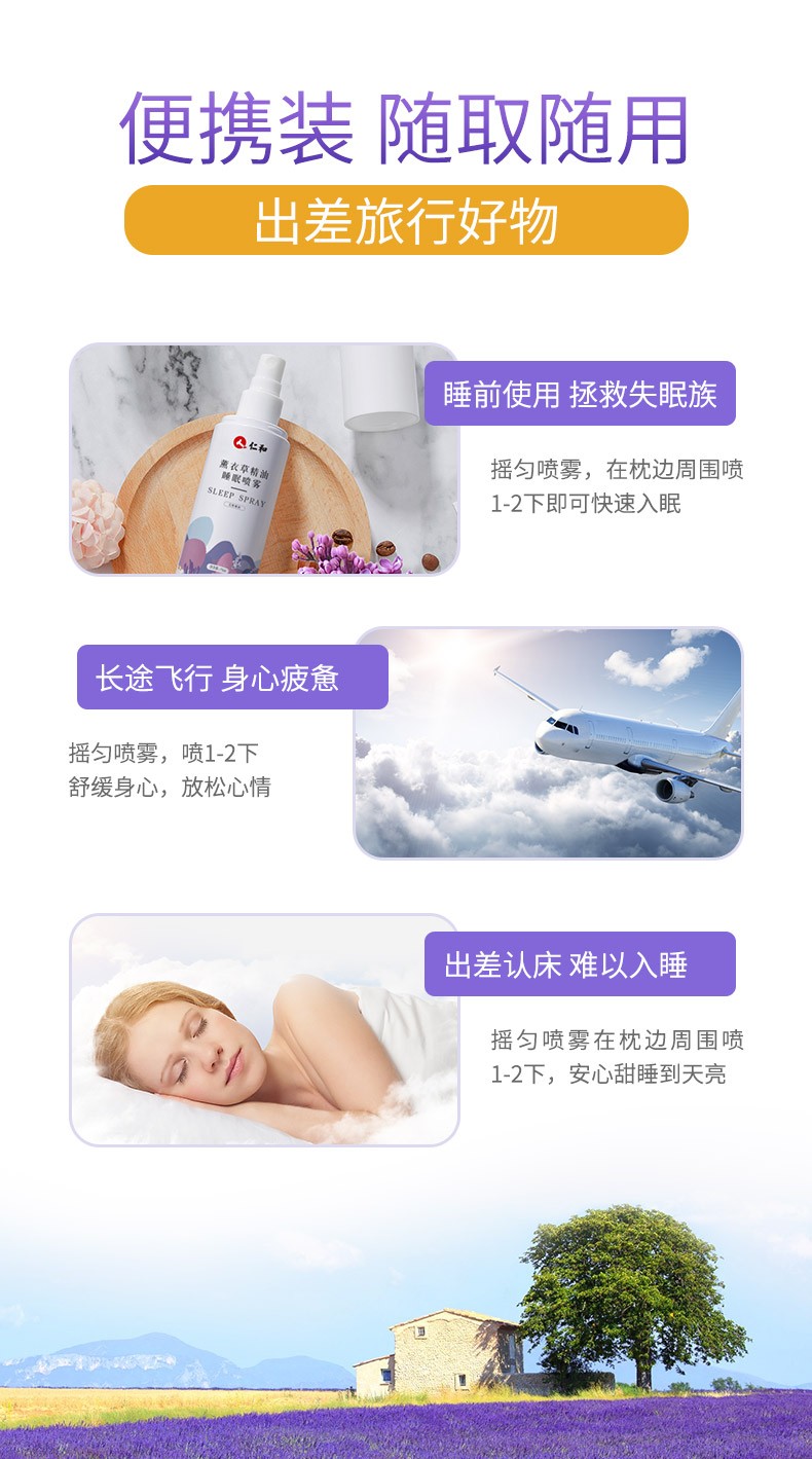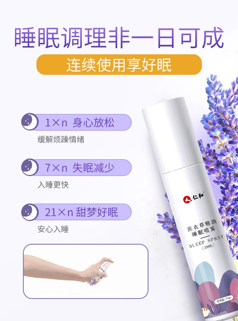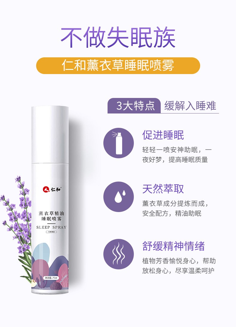 中国 仁和 助眠安神 薰衣草精油睡眠喷雾75ml*2两只装