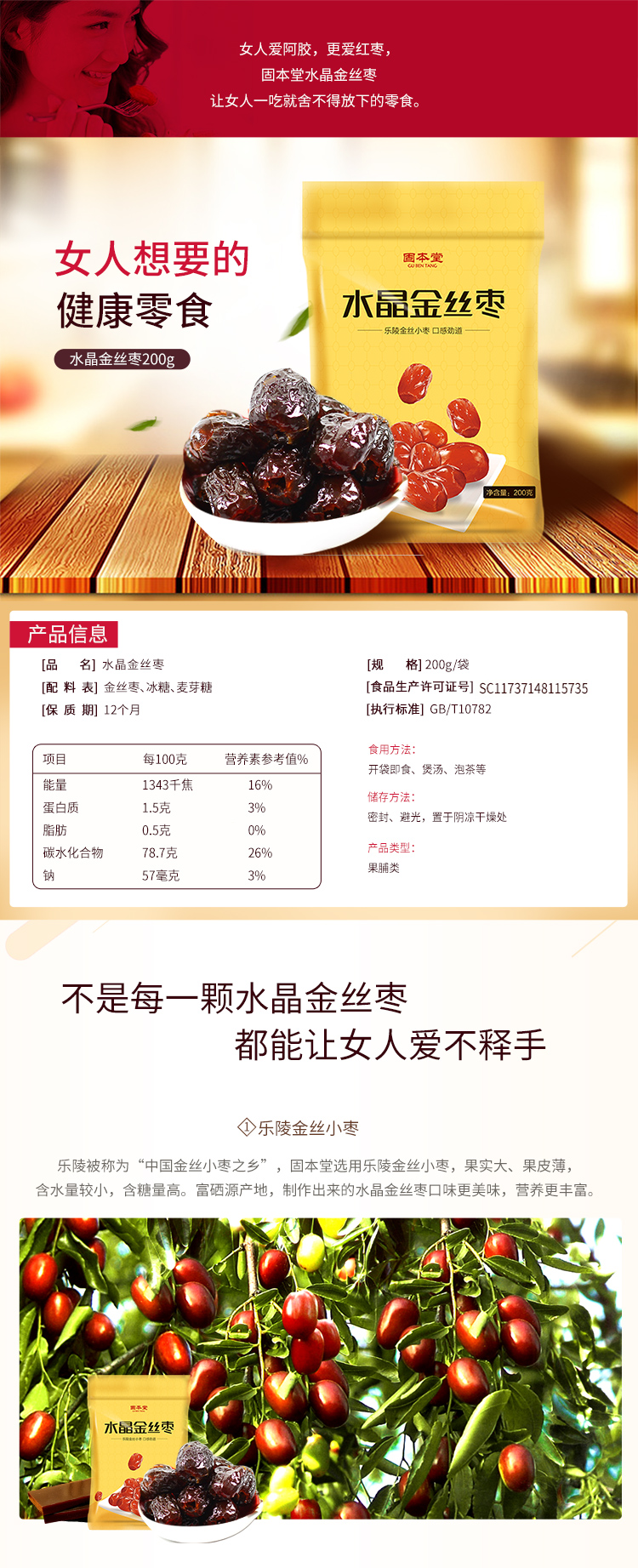 您所在的位置:首页 > 营养保健  > 营养保健 > 传统滋补  > 固本堂金丝水晶枣即食水晶枣无核蜜枣200g