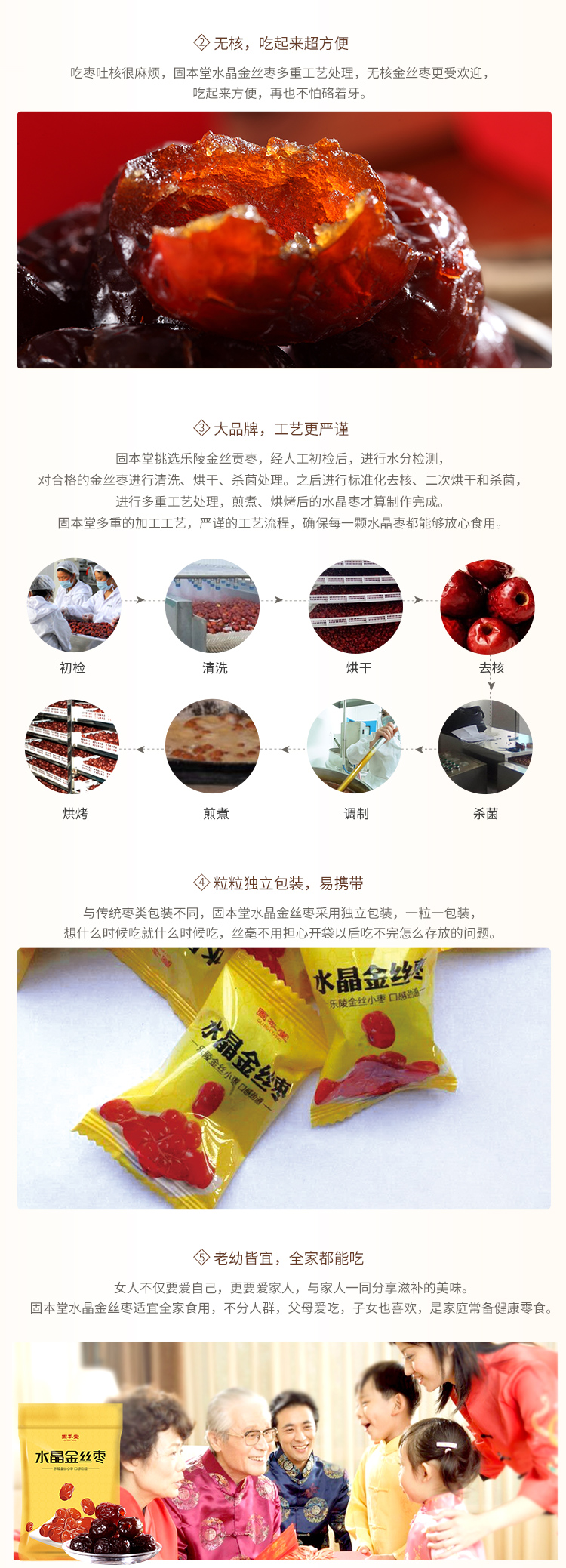 固本堂金丝水晶枣即食水晶枣无核蜜枣200g