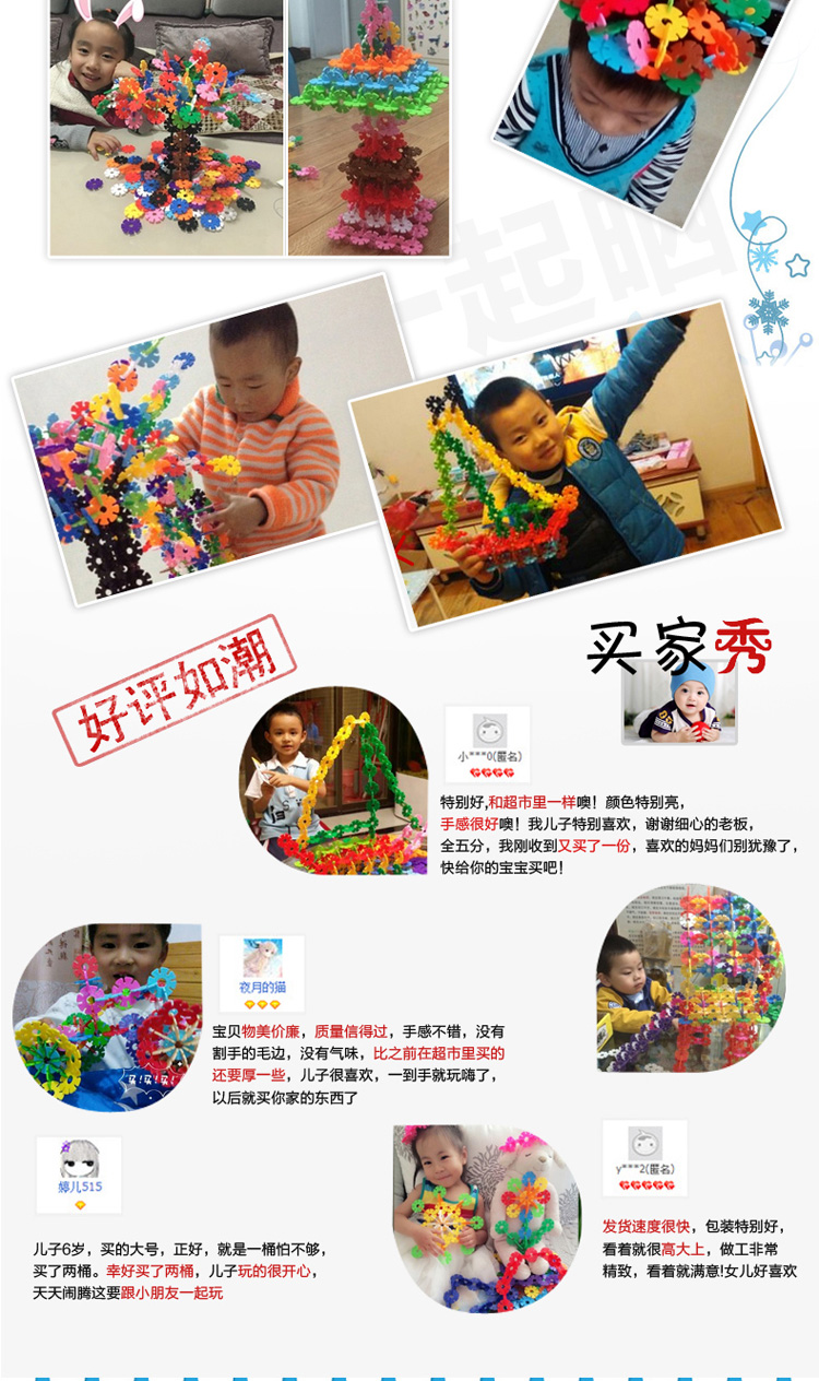 怀恩 儿童益智小孩玩具大号雪花片积木拼插男孩拼装加厚雪花片女孩玩具 桶装300片