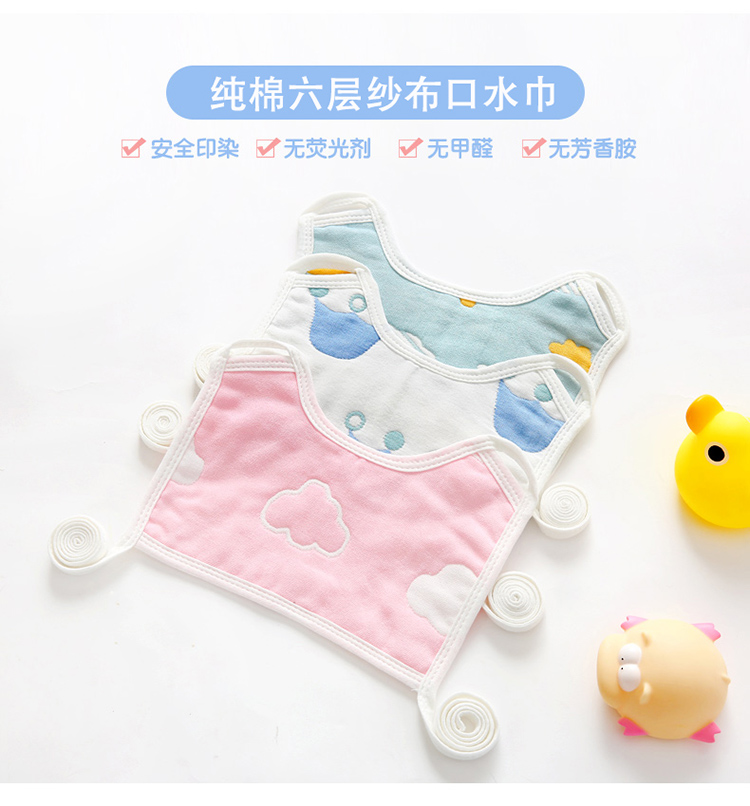 动感光波新生婴儿纯棉6层纱布围嘴宝宝围兜花型颜色随机发