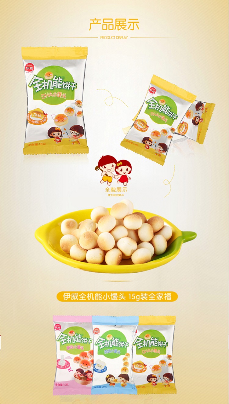 【品牌直供】伊威 小馒头3口味组合(DHA小馒头15g+原味小馒头15g+高钙小馒头15g)各10袋