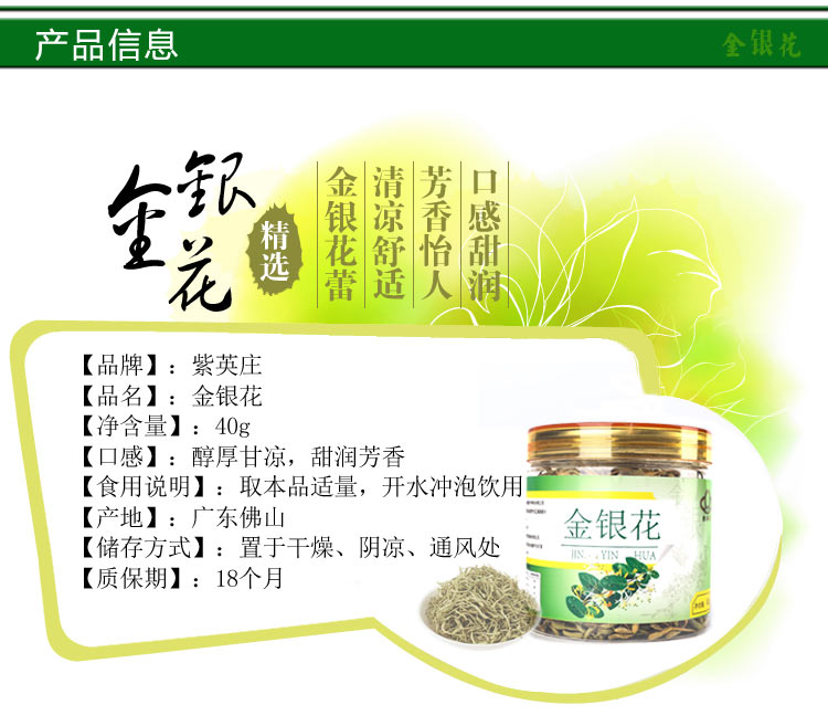 紫英庄 金银花 降火下火茶 罐装40g 精选金银花花草茶