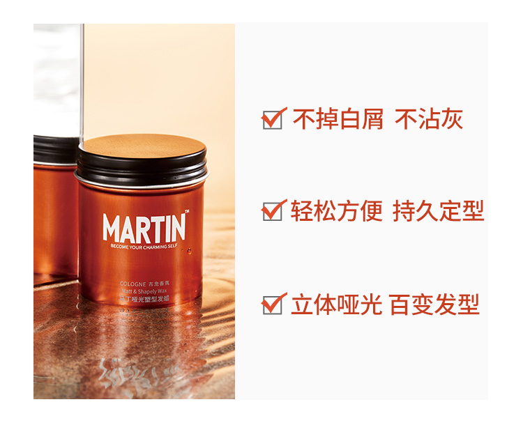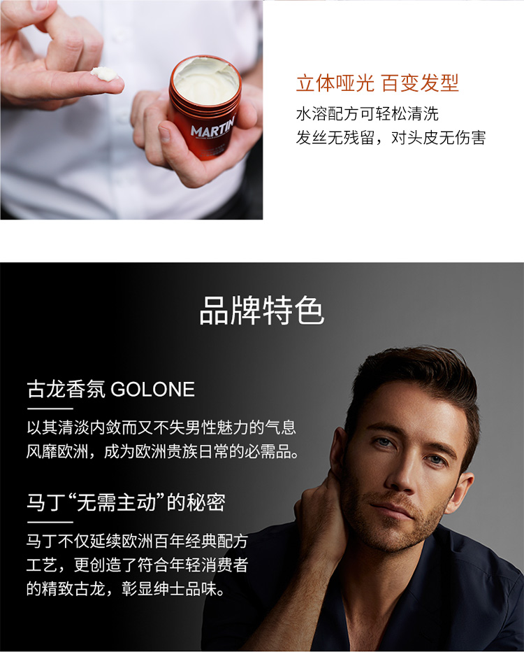 您所在的位置:首页 > 个人护理  > 洗发护发 > 其它洗护发产品  > Martin/马丁男士发蜡持久定型发胶喷雾头发造型发泥自然蓬松哑光清香无味套装 塑型发蜡-窄口80g+激劲造型喷雾220ml