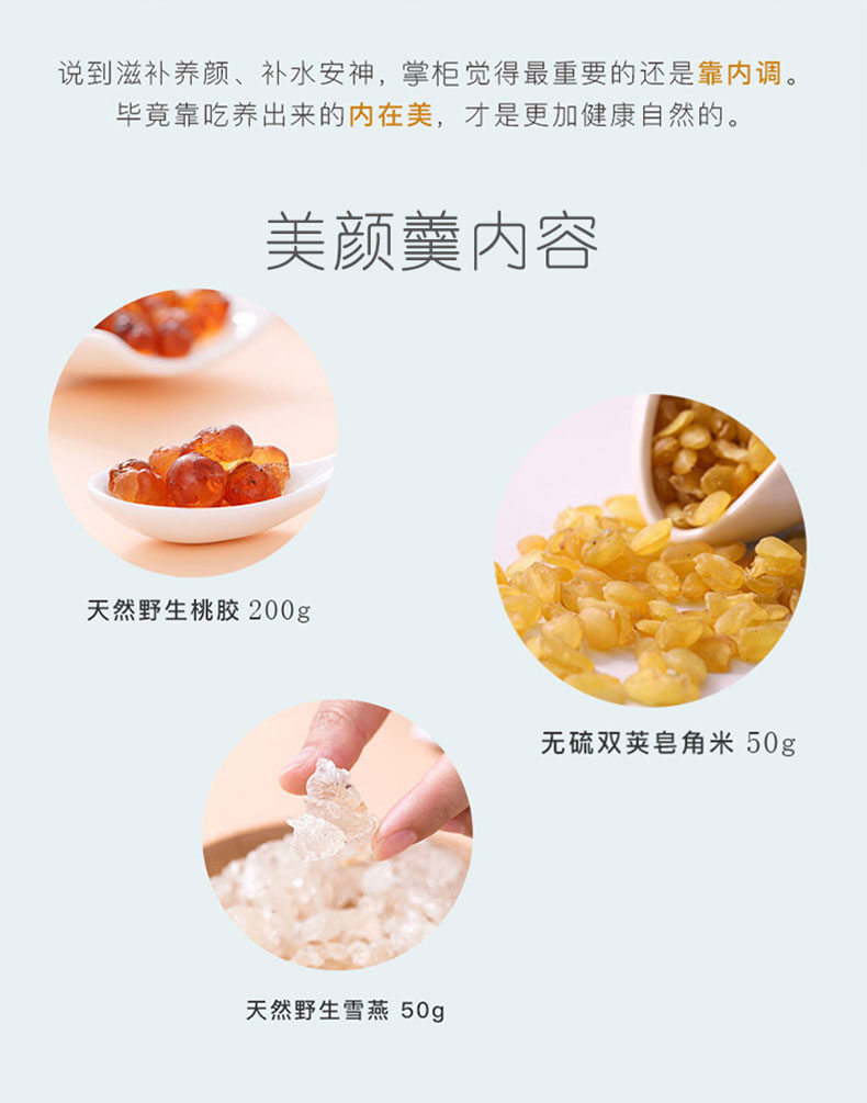 鲜珥家 胶原组合(桃胶200g/皂角米50g/ 雪燕50g各一袋)