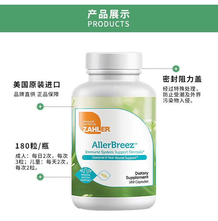 美国Zahler舒缓皮肤瘙痒止痒鼻炎儿童成人槲皮素180粒【美国直邮】