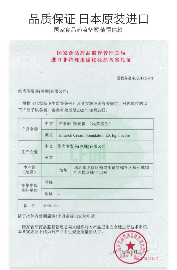 您所在的位置:首页 > 美妆护肤  > 美妆护肤 > 面部护肤  > 日本进口齐莱丽粉底霜10g