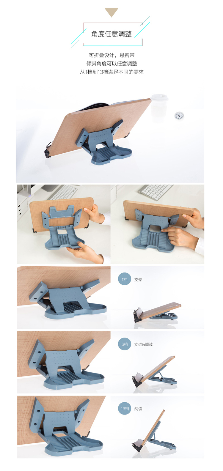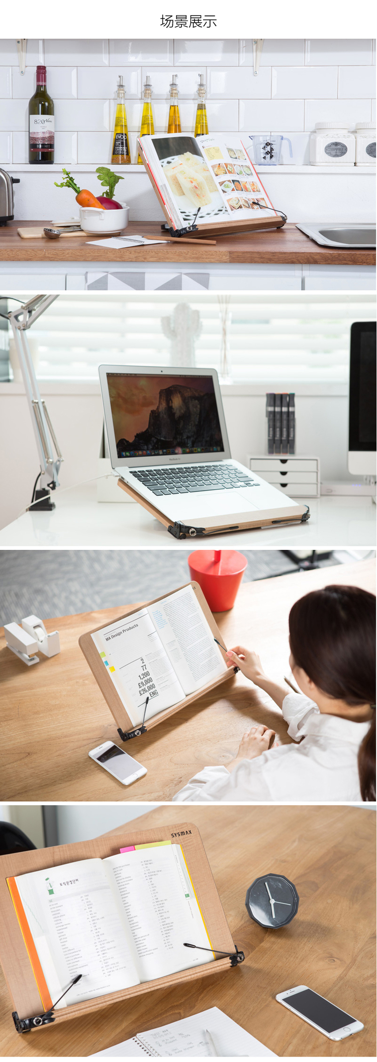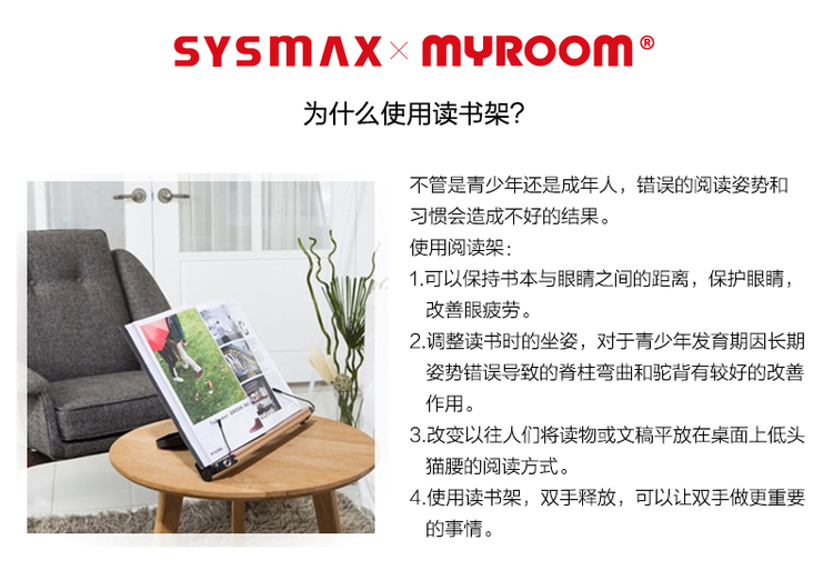 韩国原产SYSMAX MYROOM可折叠读书架阅读架支撑架 浅棕色 M灰蓝