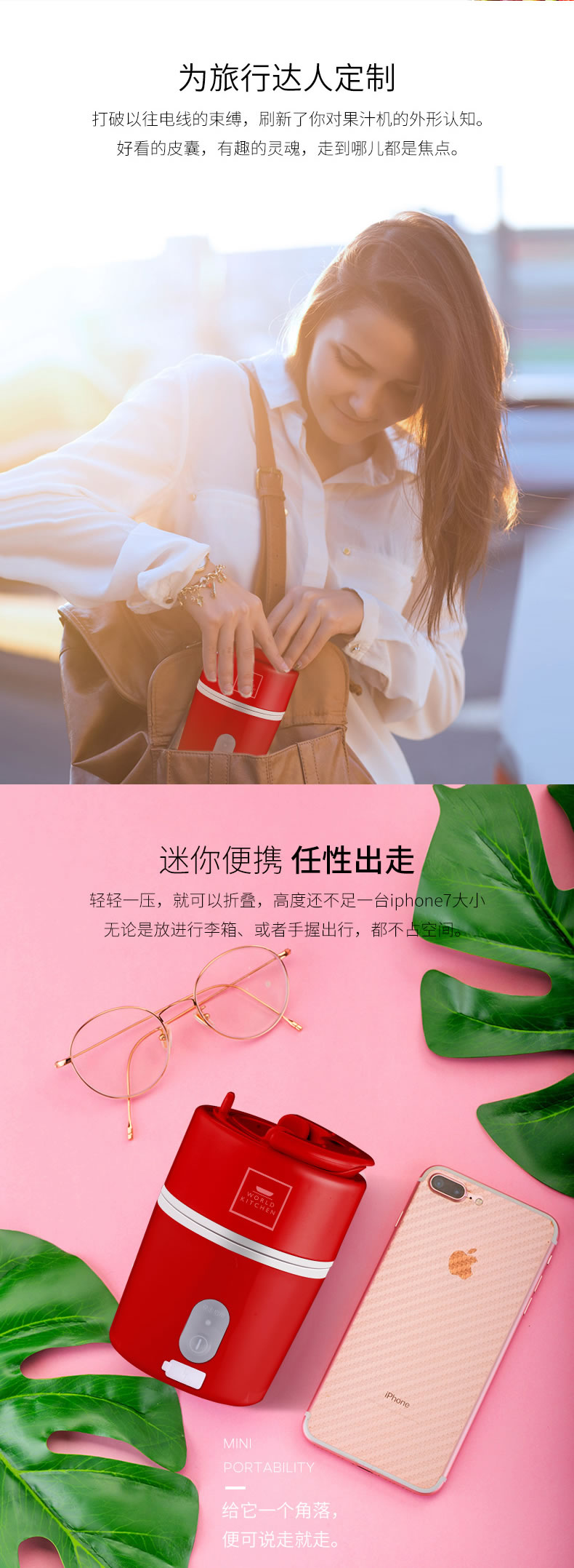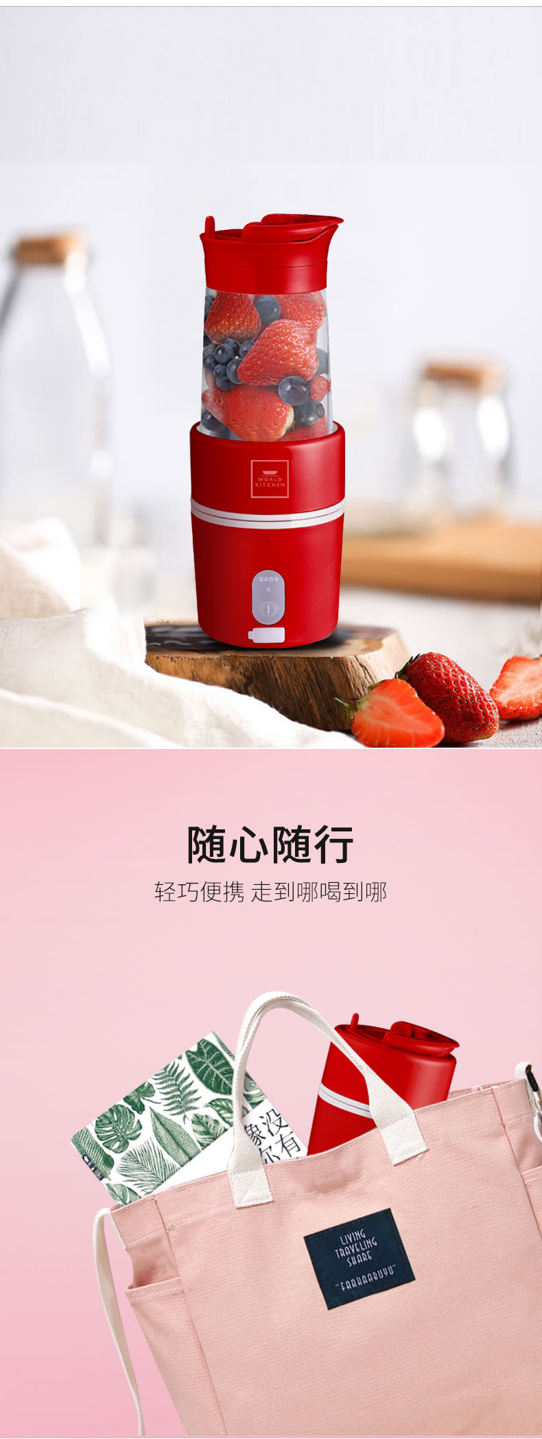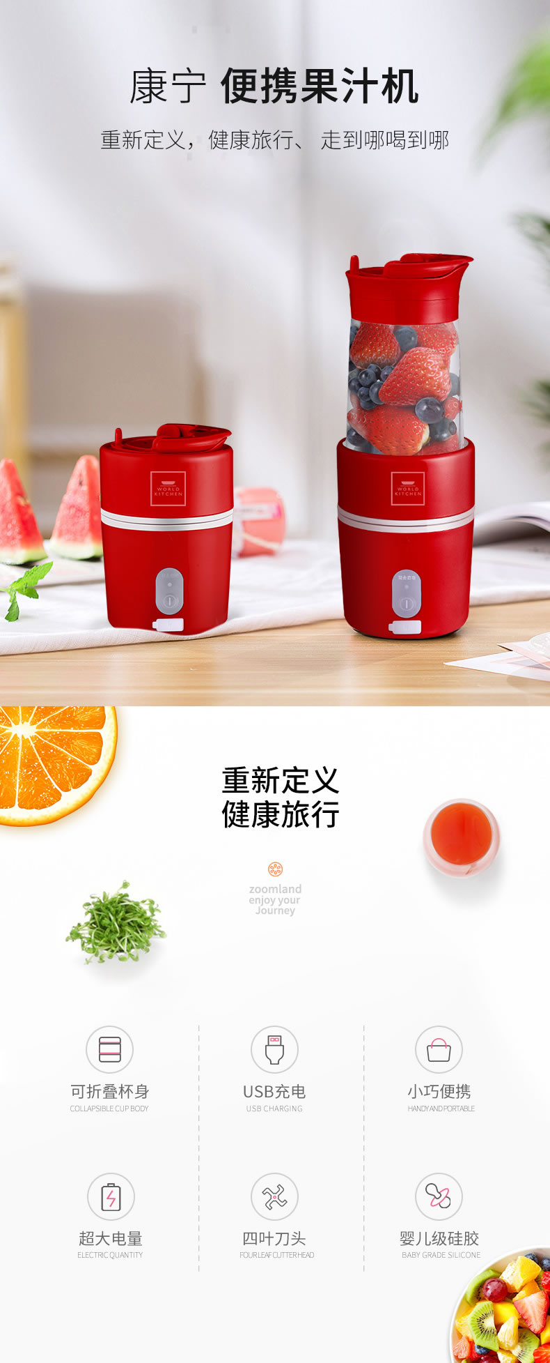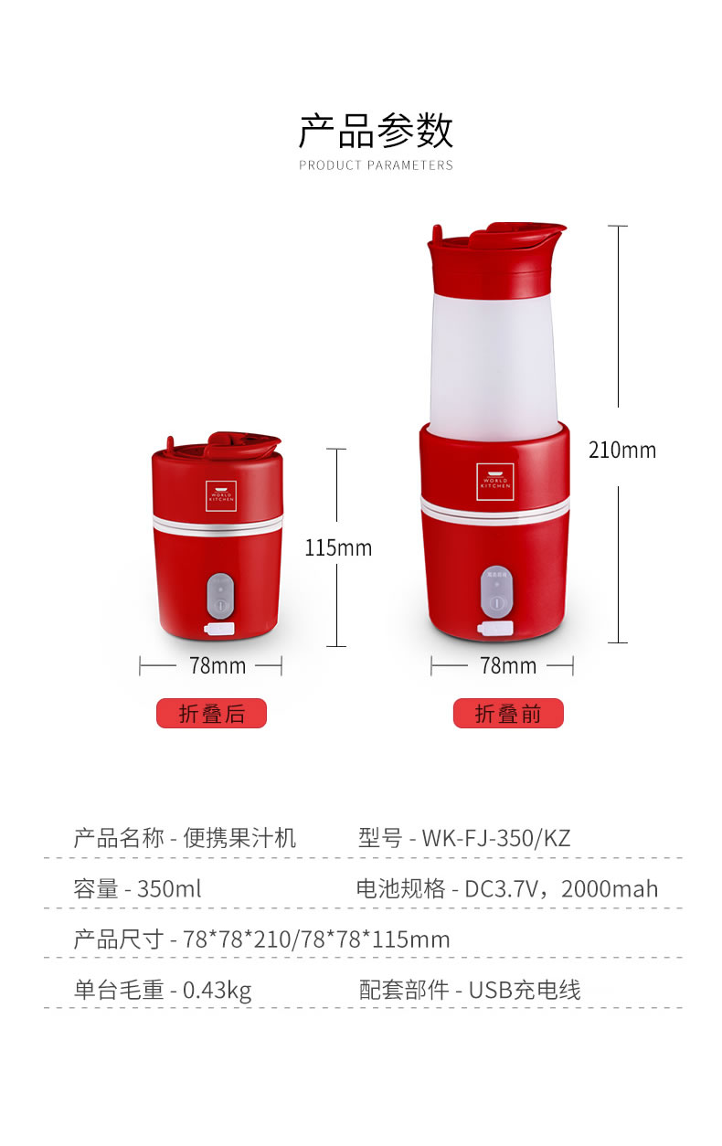 【授权商品】WORLD KITCHEN 康宁 WK-FJ-350/KZ便携果汁机折叠果汁机搅拌榨汁机榨汁杯350ML