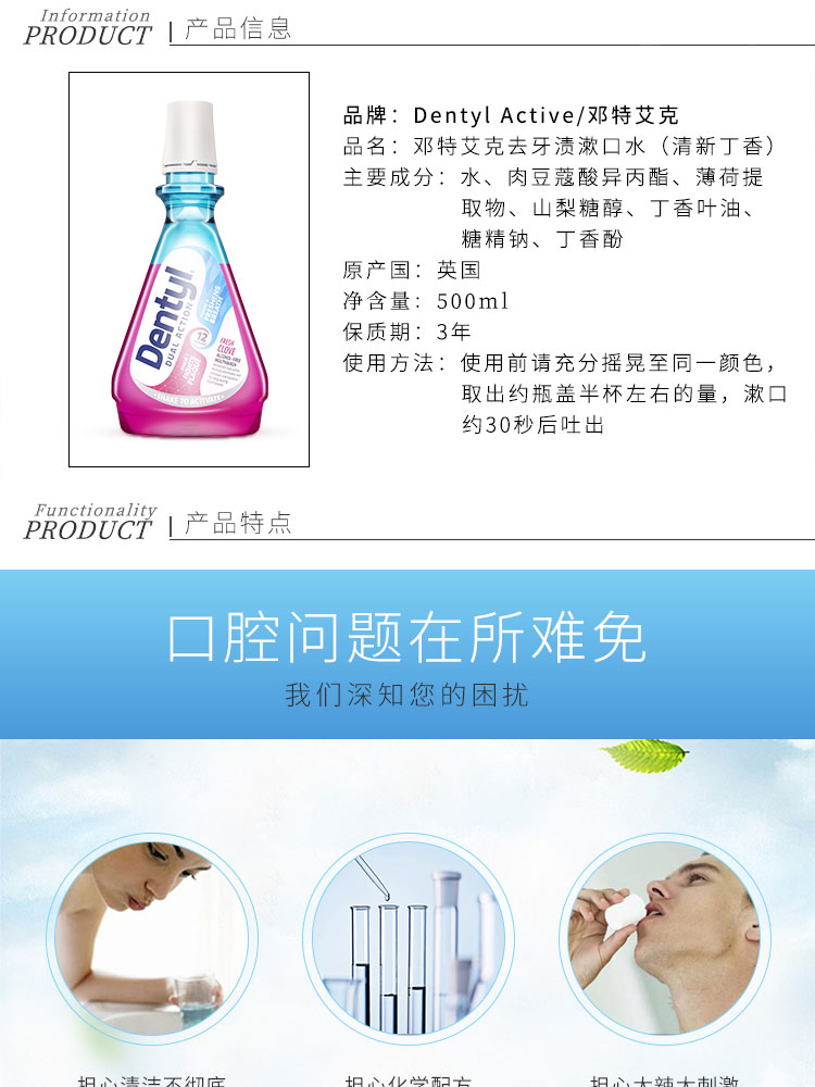 您所在的位置:首页 > 个人护理  > 口腔护理 > 漱口水  > 【授权商品】邓特艾克 星空漱口水 去牙漬漱口水(清新丁香)500ML