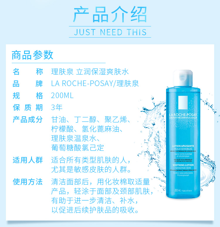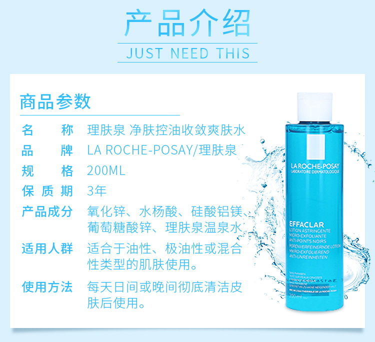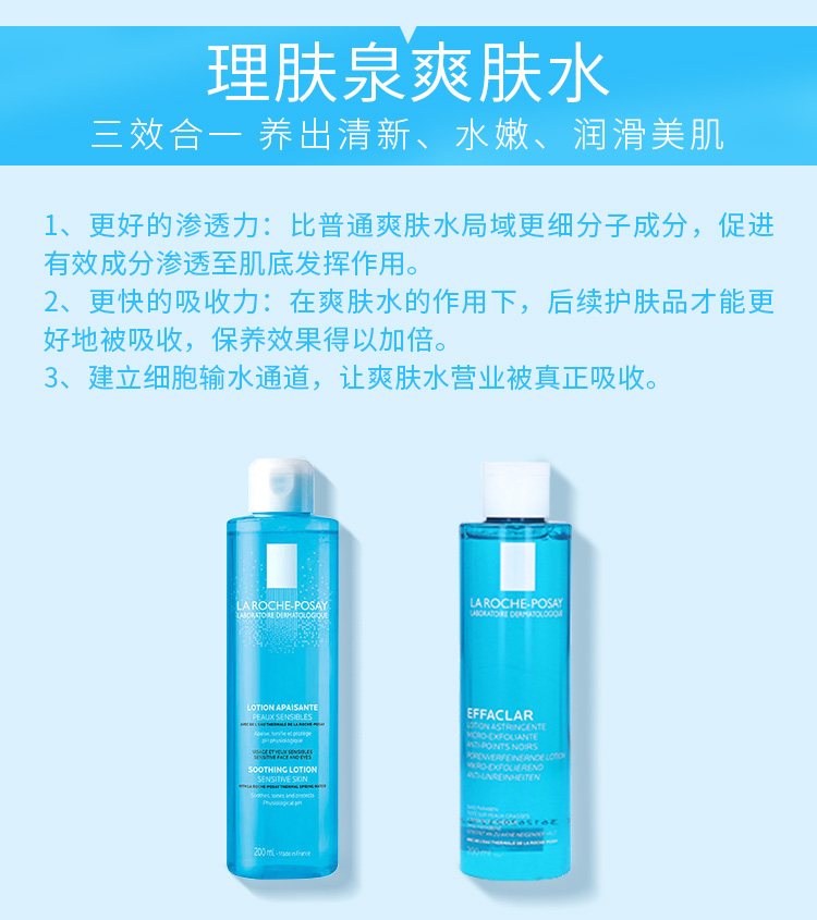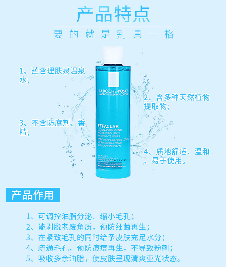 【法国直邮】新款 理肤泉LA ROCHE-POSAY 立润保湿爽肤水 二次清控油爽肤 净化角质清痘净肤200ml